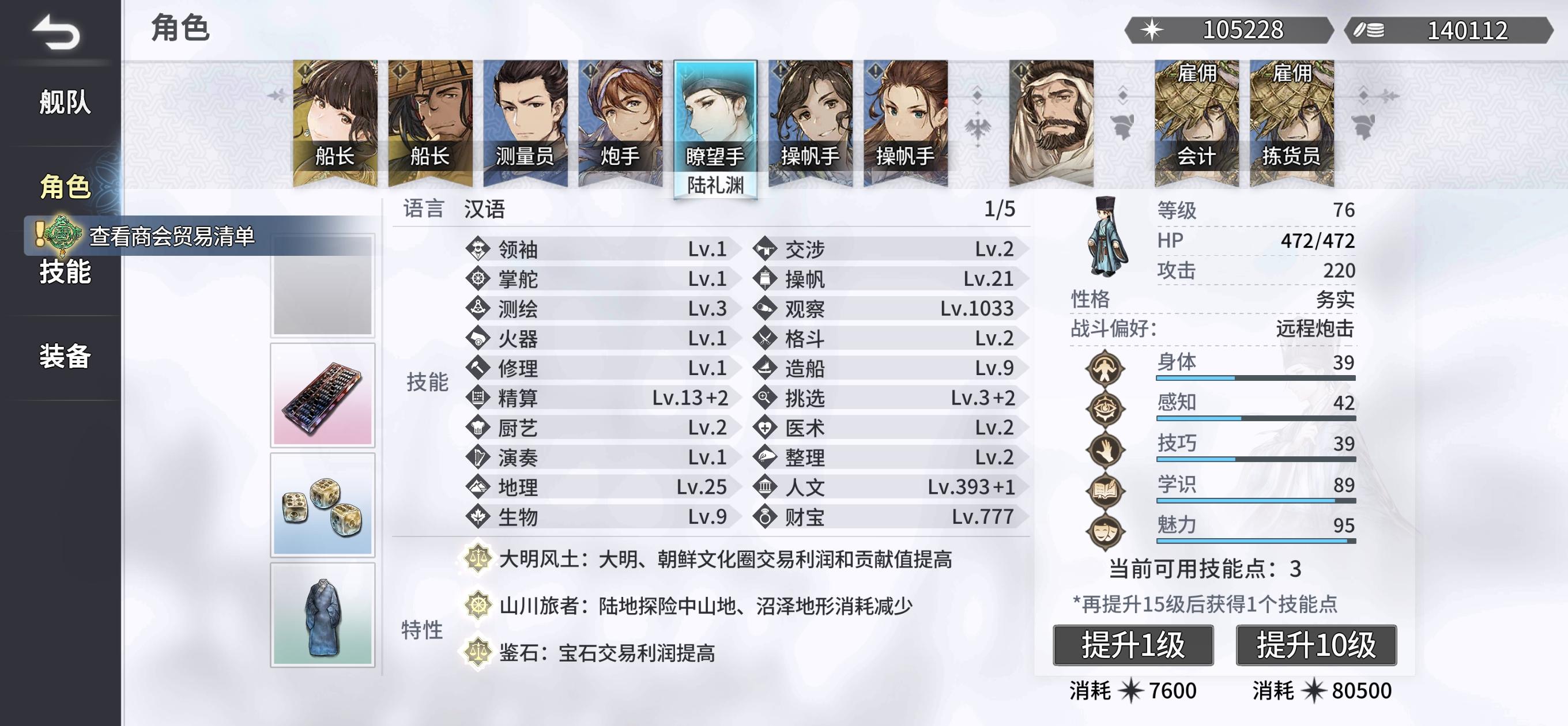 很多新手玩这款游戏后最多的就是跟着主线走 对赚钱和跑商玩法一知半解 就谈谈云睦线玩法 云睦线出生后没啥好说的跟着主线第一章走 任务要求3万和5艘船 没钱没船咋办 做悬赏很快就完成 来到第二章 一边做任务一边开图一边做悬赏 把东亚和东南亚的图和航线全开好 完成第二章刷刷悬赏 跑跑商低买高卖(尽量经济萧条的买到市场繁荣或者特定要求比如大明商品价格水涨船高的卖) 资金很快来到几十万到几百万 最优先的是把