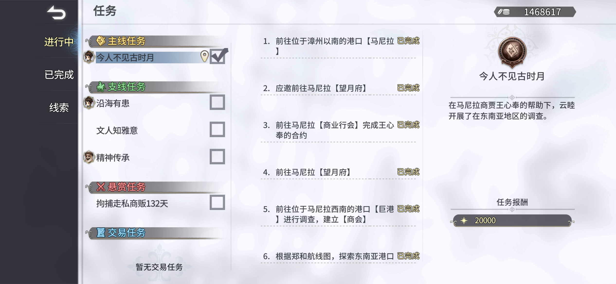 就是去马六甲,洛布里没有任何后续任务的提示,不知道哪里有问题,反正现场卡任务了,哪位大佬指点一下