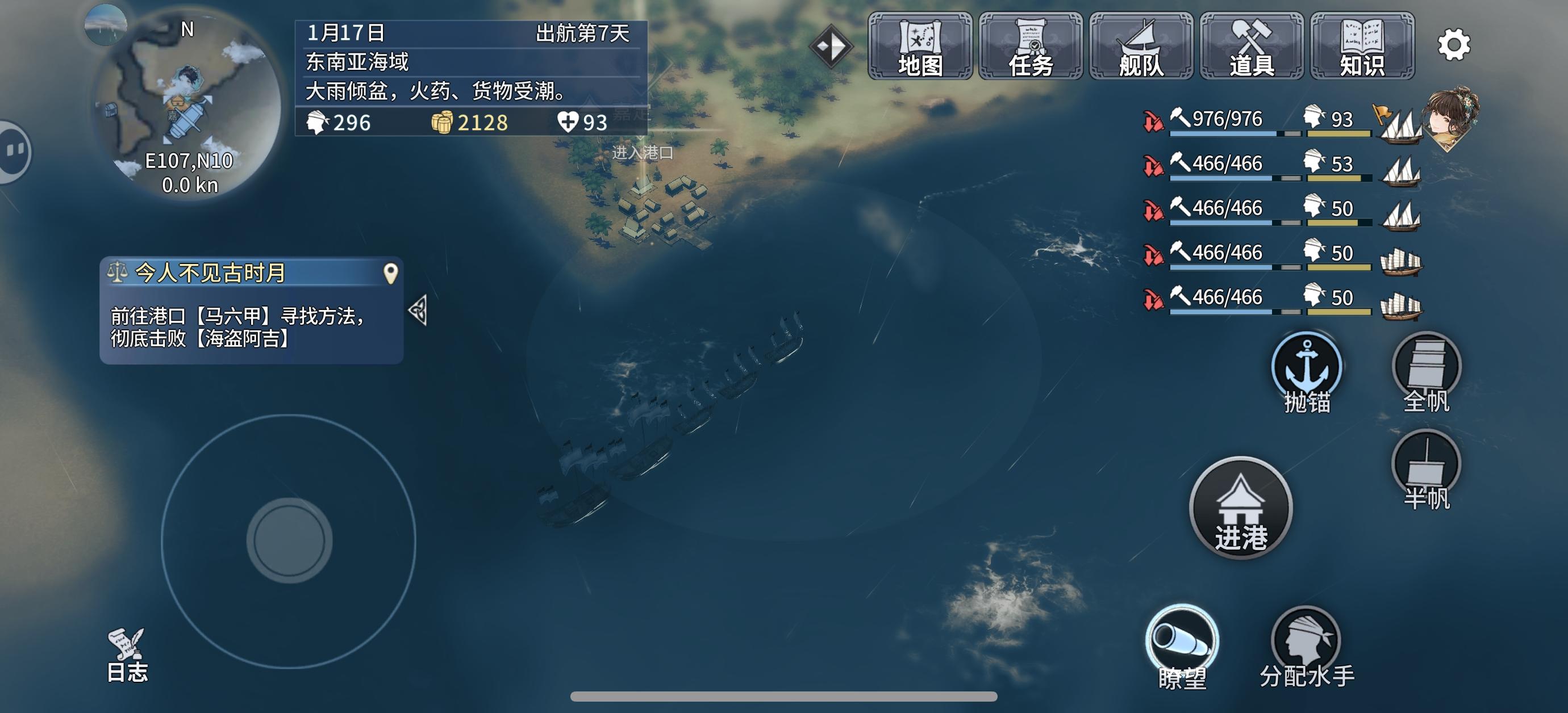 我想请问一下各位大佬,我那个主线任务去马六甲寻找彻底击败海盗阿吉的方法,我去了那个马六甲,没有任何感叹号提示啊,还有第二个问题啊,就是我中间那个图沿海有患这个任务,我跑遍了东南亚,亚洲甚至印度洋的所有港口,都没有任何感叹号,第三个就是那个加拉瓦姐弟相逢任务,正如我第一个图,我和他姐姐的好感度已经满级,并且大他也在我的船上,可就是没有触发这个任务,我这个到底是游戏的bug还是我方法没对?