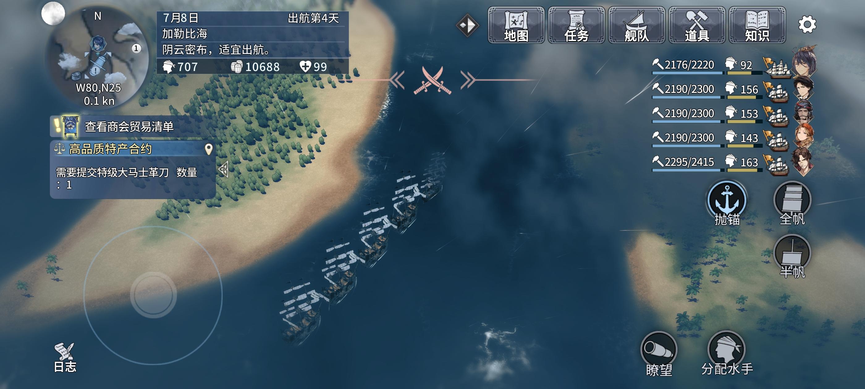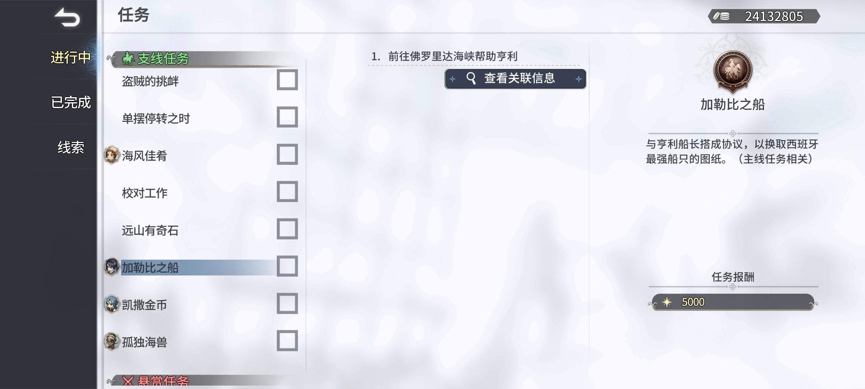 我想请问一下各位大佬,我那个主线任务去马六甲寻找彻底击败海盗阿吉的方法,我去了那个马六甲,没有任何感叹号提示啊,还有第二个问题啊,就是我中间那个图沿海有患这个任务,我跑遍了东南亚,亚洲甚至印度洋的所有港口,都没有任何感叹号,第三个就是那个加拉瓦姐弟相逢任务,正如我第一个图,我和他姐姐的好感度已经满级,并且大他也在我的船上,可就是没有触发这个任务,我这个到底是游戏的bug还是我方法没对?