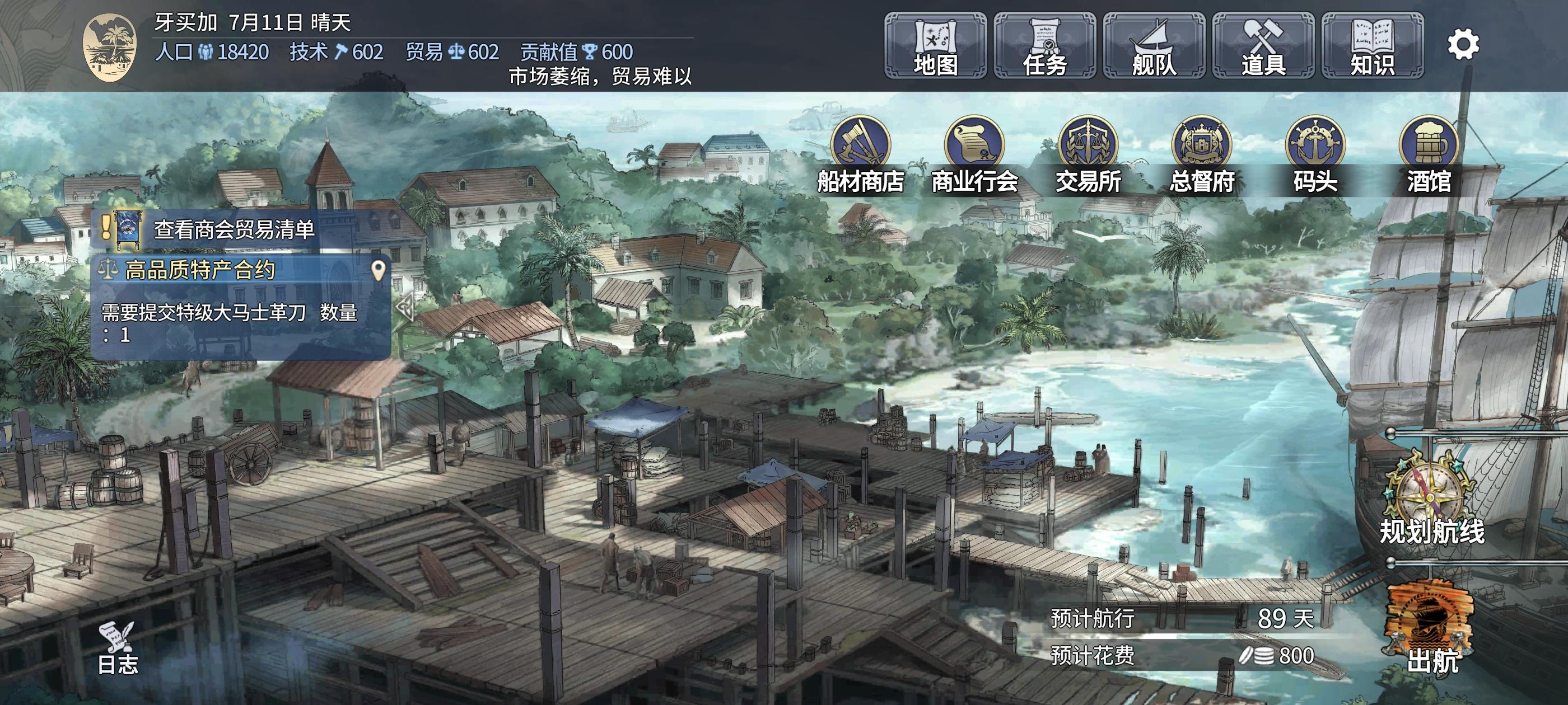 跌跌撞撞终于完成安德鲁主线第二章了,路费有了,明天开始第三章。赚钱总结,开局摸金叶子,道具店 6w,探索到的发现物留着,直接去普利茅斯建立商会,技术拉满,直接用泛材造船,每次都必出大型船。5 艘飞剪船可以开到 100 格,开图和跑商速度都超快(马力 14 )。然后去开通开罗港口(有祖母绿宝石),同样建立商会。普利茅斯的商会贸易选择去开罗进货祖母绿,存普利茅斯的仓库,不要卖。开罗的商会贸易选择送货去