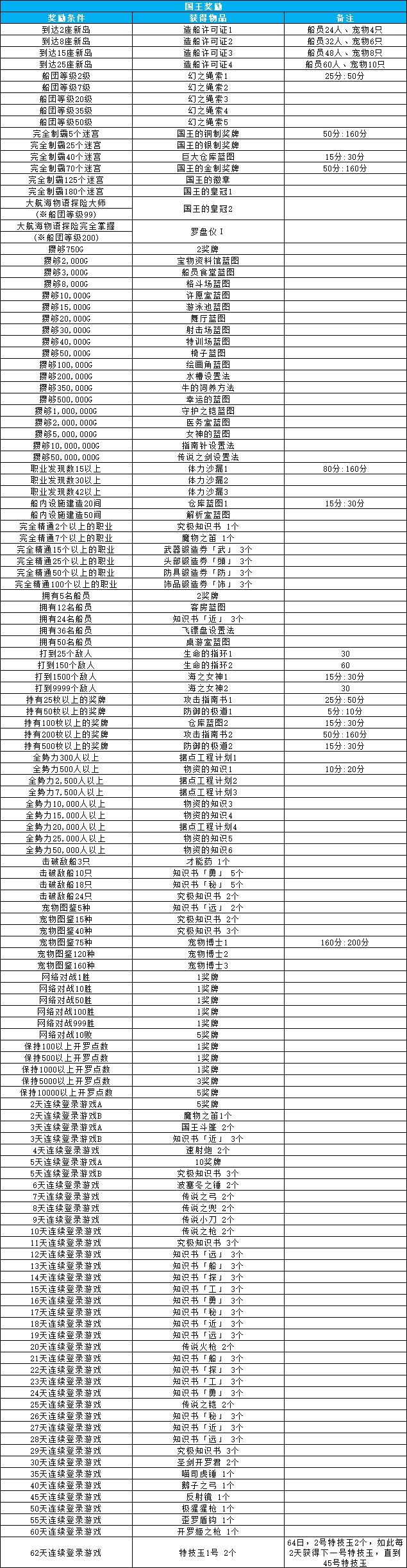 《大航海探险物语》图鉴:国王的奖励一览