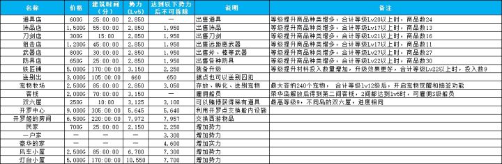 《大航海探险物语》岛内建筑价格、建筑时间、说明一览