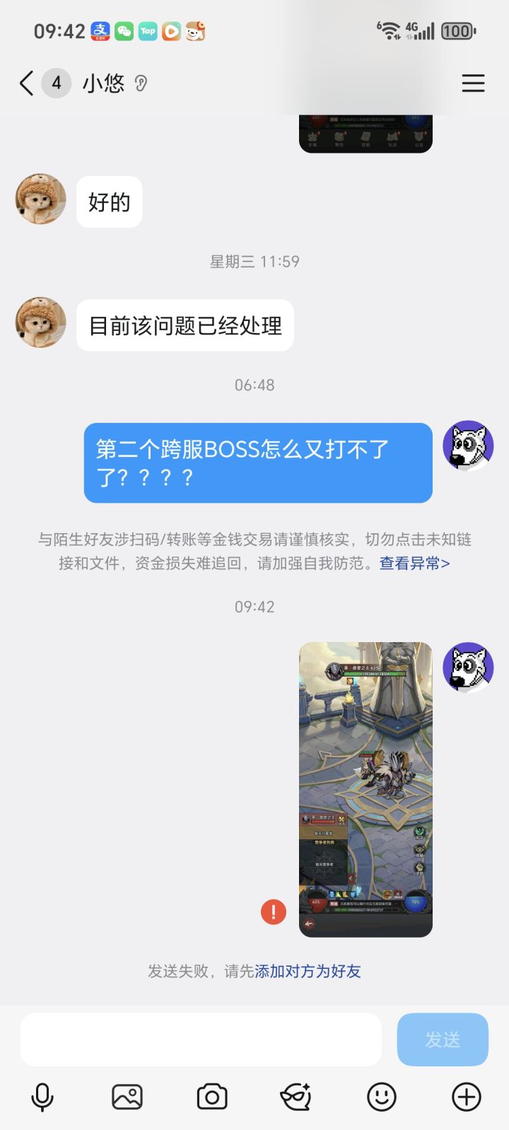 跨服BOSS打不了,发信息给客服,客服直接拒收消息,蒸蒸日上