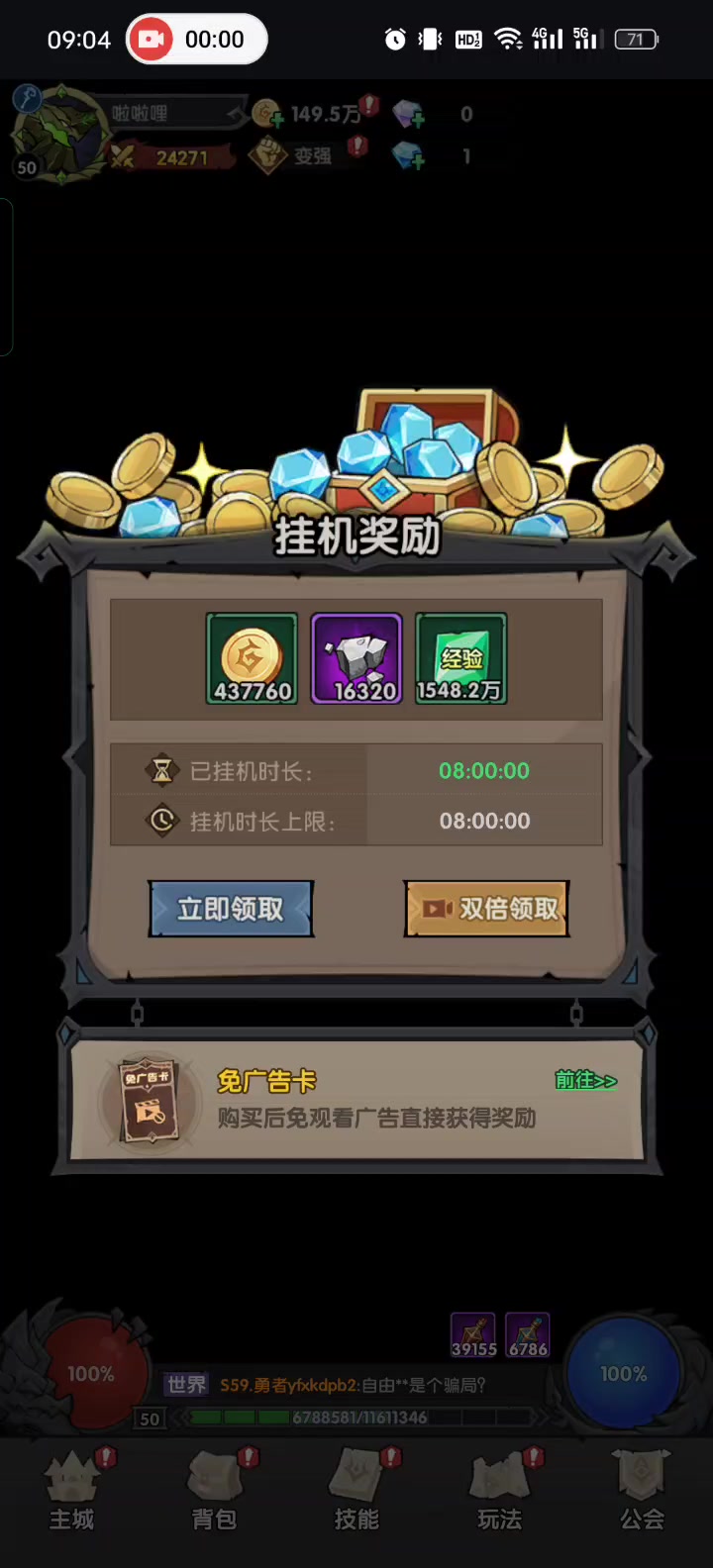 离线收益看广告双倍没反应 立即领取也没反正 点免广告卡,您猜怎么着?马上给你点进去正常显示。充了俩首充就当喂狗了,真恶心,还好没多花钱。