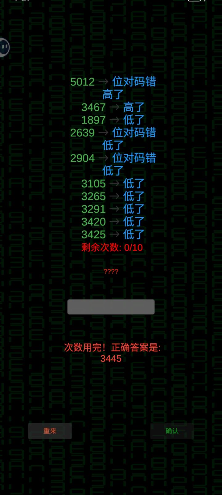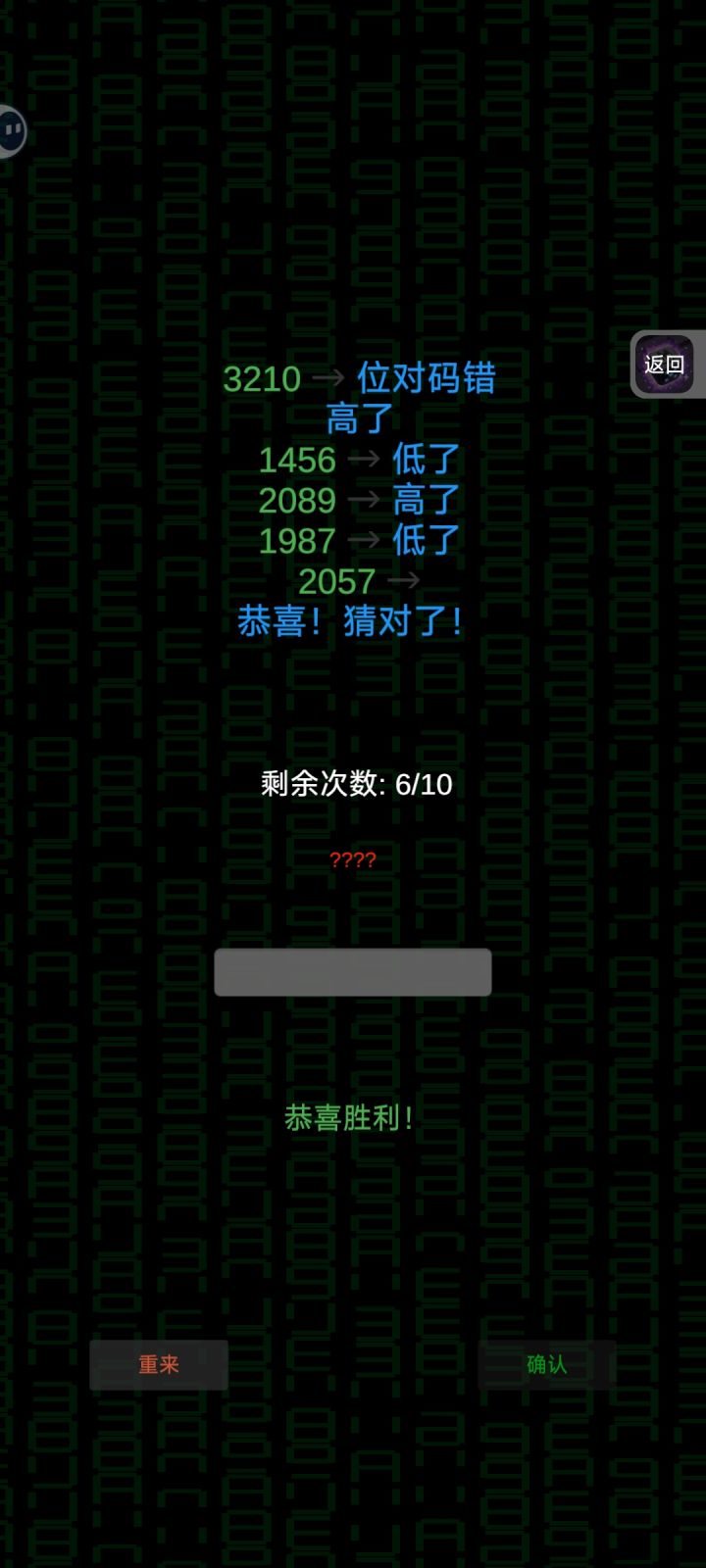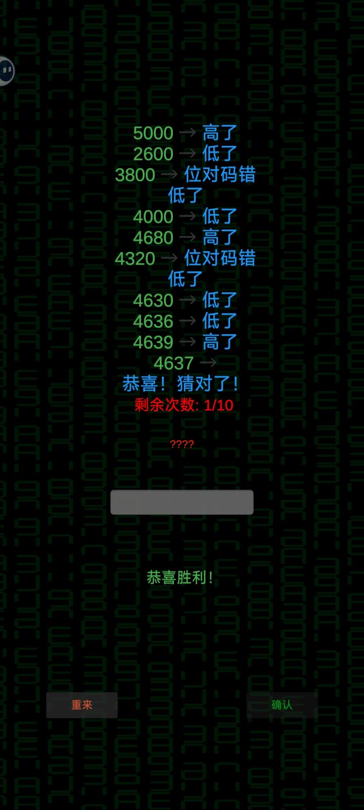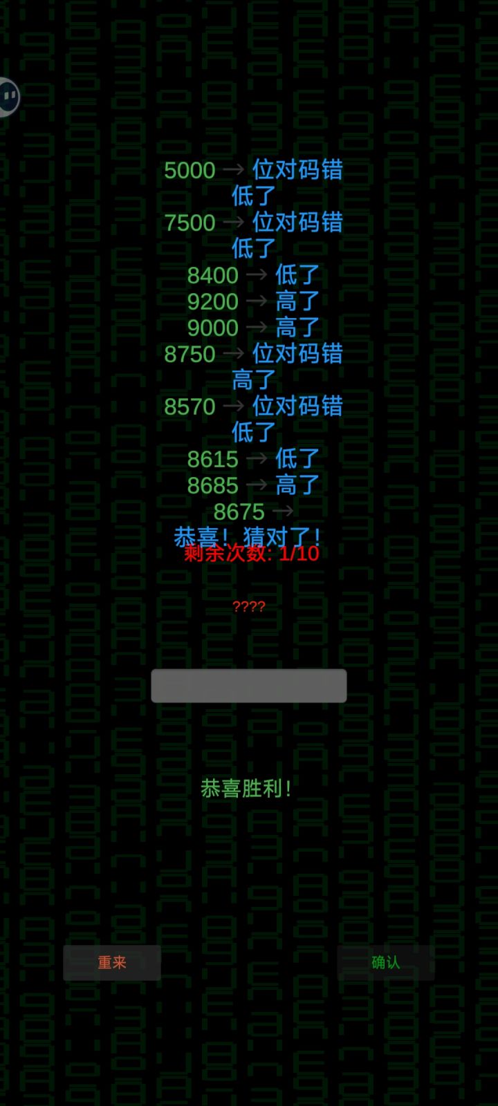 搞清楚核心规律之后再玩就不会一头雾水了,虽然不能保证百分之百的准确率,但好歹可以通过二分法和排除法锁定两到三个正确位置上的正确数字了。