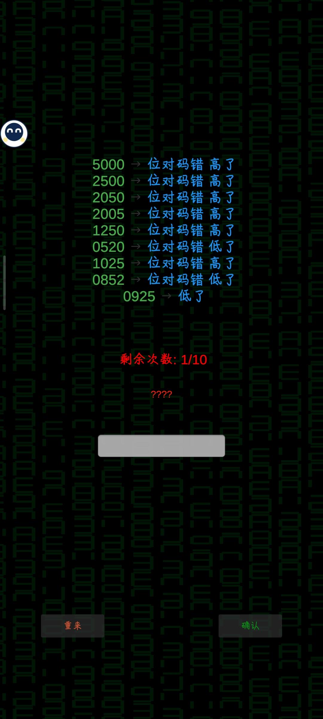 对于已经入门的朋友首个数字填写5466位对码错,高了,填2990高了,填2737位对码错,低了,填7370低了,填8223你会发现游戏难度大大降低
