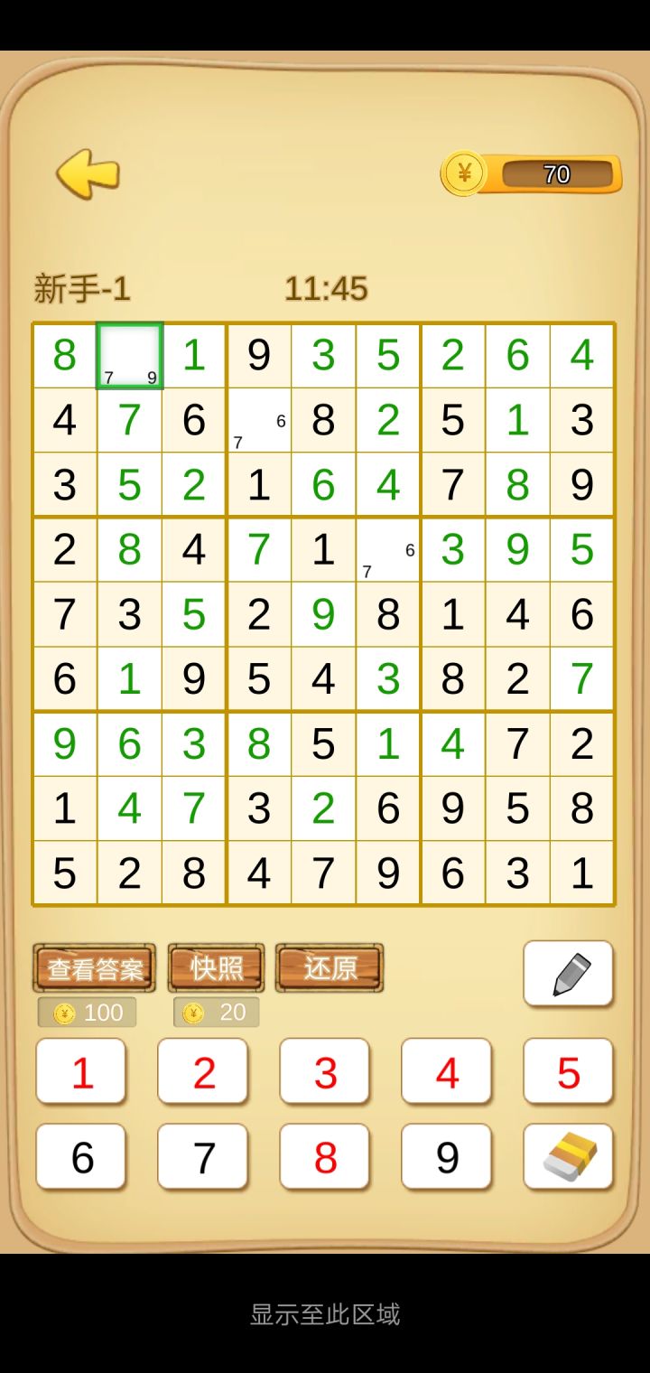 如图所示许多新手在入坑时经常会因为对数独规则的理解不到位而犯了许多错误,比较常见的就是新手的瞎蒙问题。我们要知道,数独是一个推理游戏,每道题的答案具有唯一性。许多新手在刚刚入坑时做题总是会带有一点瞎蒙的性质,这是对规则理解不到位的典型表现,因为每道题的答案具有唯一性,也就是说每一个空都只能是对应的一个数字。如图所示的空格,可以填3,4,5,7,但是要注意!数独的答案具有唯一性。也就是说345