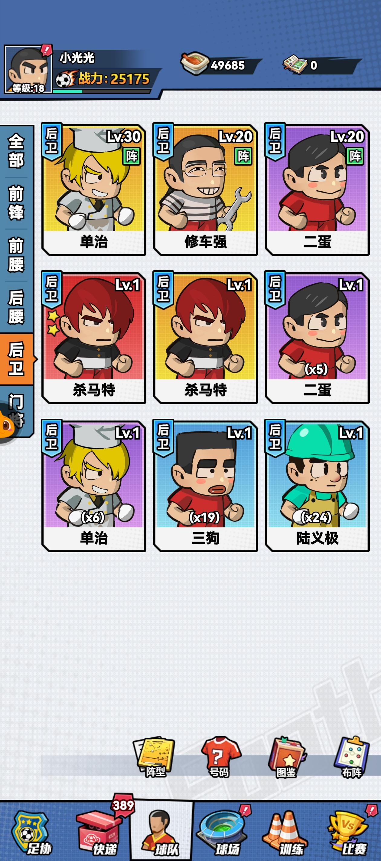 这个游戏真心建议不要学别人抽多少巨星卡、除非巨氪!养成游戏就是要按自己节奏万,搭配好了pve、pvp都可以越战。随着时间累积,联赛等级提高,球员都可以嫖到,把不要的巨星卖出去获得想要的巨星。后卫零微氪建议:修车强、摔跤手、白眉、这三个技能有点球申诉、减少一次头球进攻、招队友协防,是比较优秀的后卫。巨星后期选择热血和a火二选一、武僧、修车强、摔跤手、白眉。号码选择4、5、6必练。阿火配合门将干扰、