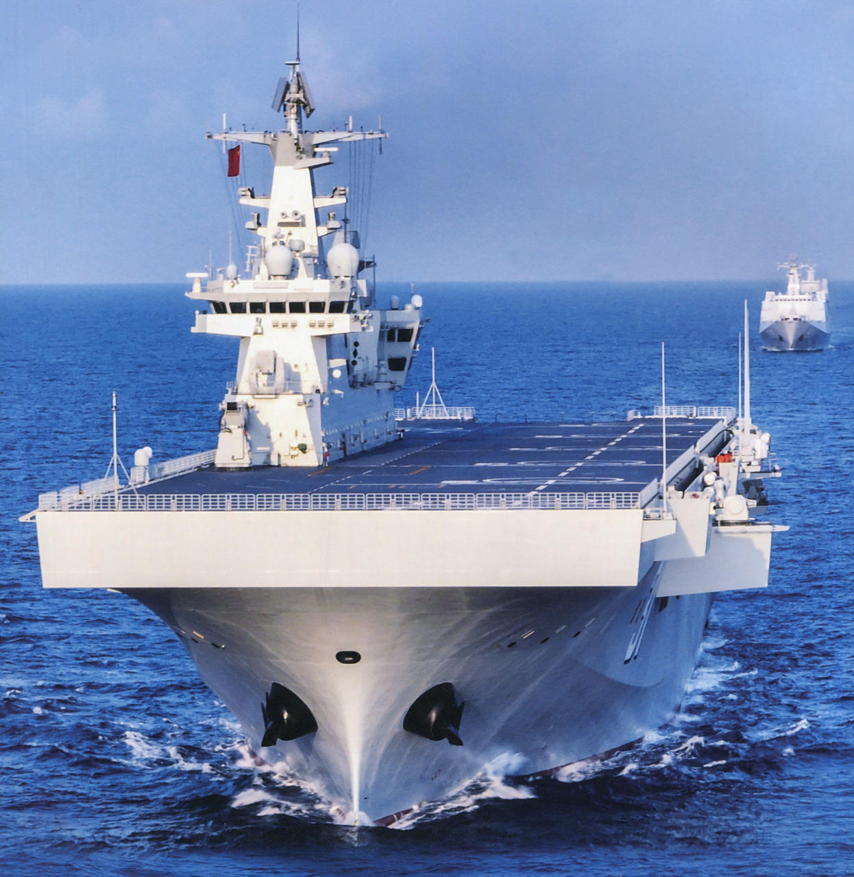 海南舰是中国自主研制的新一代两栖作战舰艇,最大排水量超过了4万吨。其配备了直通甲板和坞舱,可搭载两栖装甲车、多型直升机、气垫艇等,具备立体登陆作战能力,并配有导弹、舰炮、电子战等武器系统