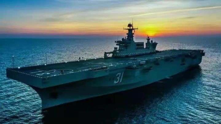 海南舰(舷号 31)是中国自主研制的 075 型两栖攻击舰首舰,具有重要的战略意义和实战价值,在中国海军两栖作战海南舰的入列,对于提升中国海军的两栖作战能力具有里程碑意义。目前,075型两栖攻击舰家族已有多艘舰艇服役,舷号从31至34依次为海南舰、广西舰、安徽舰、湖北舰,它们共同构成了中国海军强大的立体两栖作战力量。