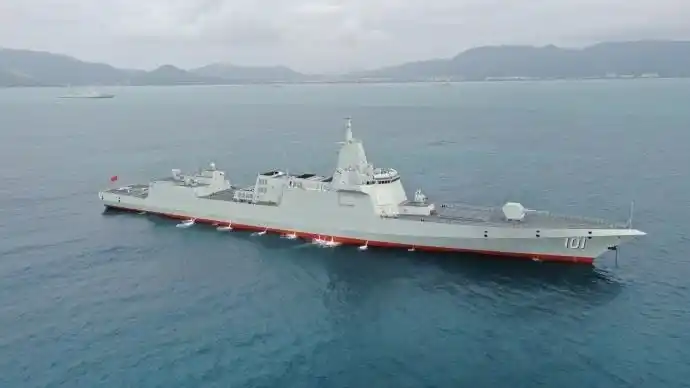 南昌舰(舷号101) 是中国自主研制的055型万吨级导弹驱逐舰的首舰,于2020年1月12日正式入列。它标志着中国海军驱逐舰实现了从第三代到第四代的跨越。该舰是人民海军吨位最大、技术最先进、综合作战能力最强的驱逐舰之一。全长近180米,装备有112单元通用垂直发射系统、130毫米主炮和被称为“万发炮”的1130近防炮。入列以来,南昌舰作为航母编队的“带刀护卫”,远航白令海,战巡太平洋,圆满完成