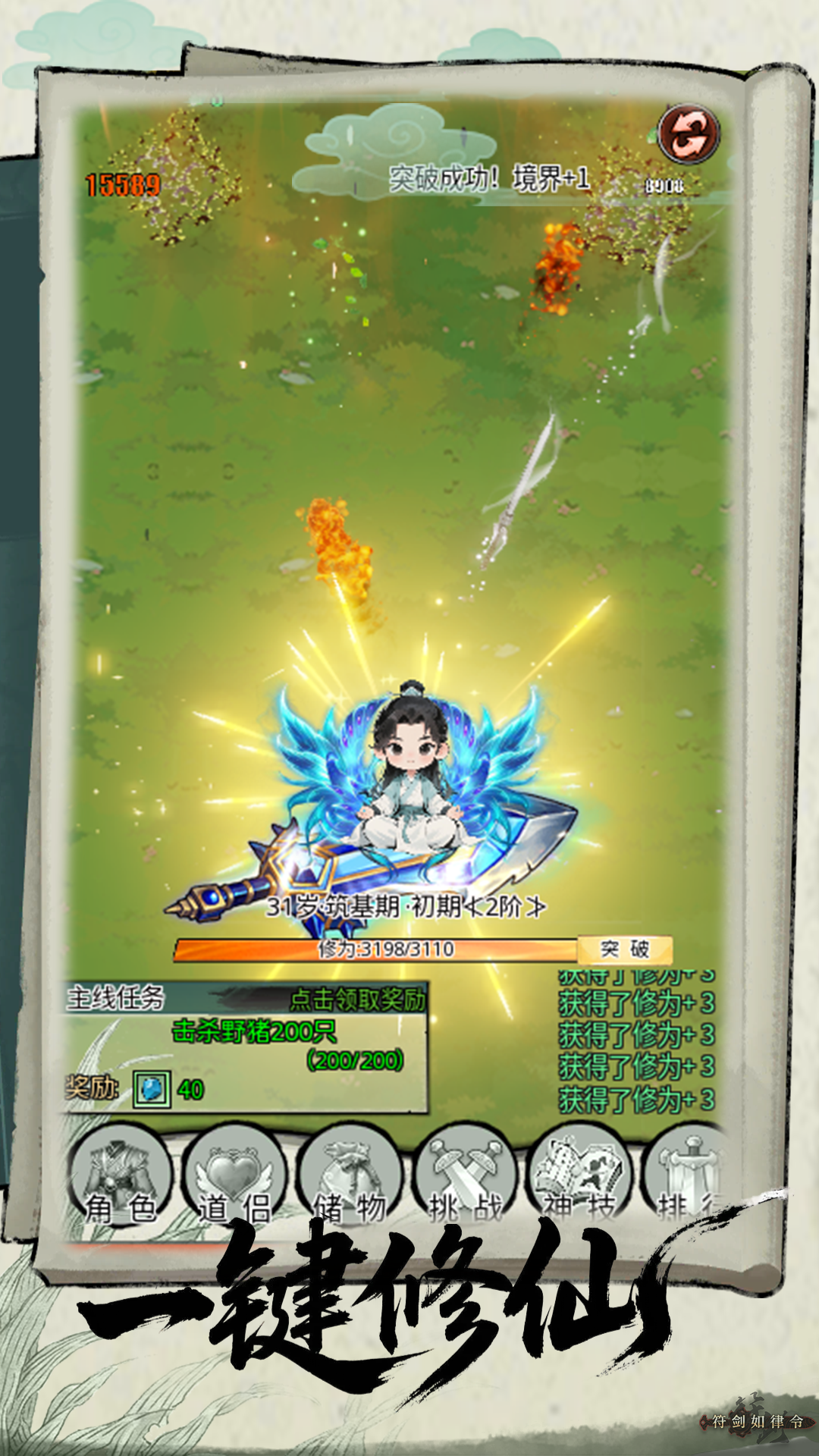 解放双手:放置挂机,收益不断 无论在线离线,你的角色都在自动修炼、打怪、刷宝。睡觉也能涨修为,上班也能得神器!