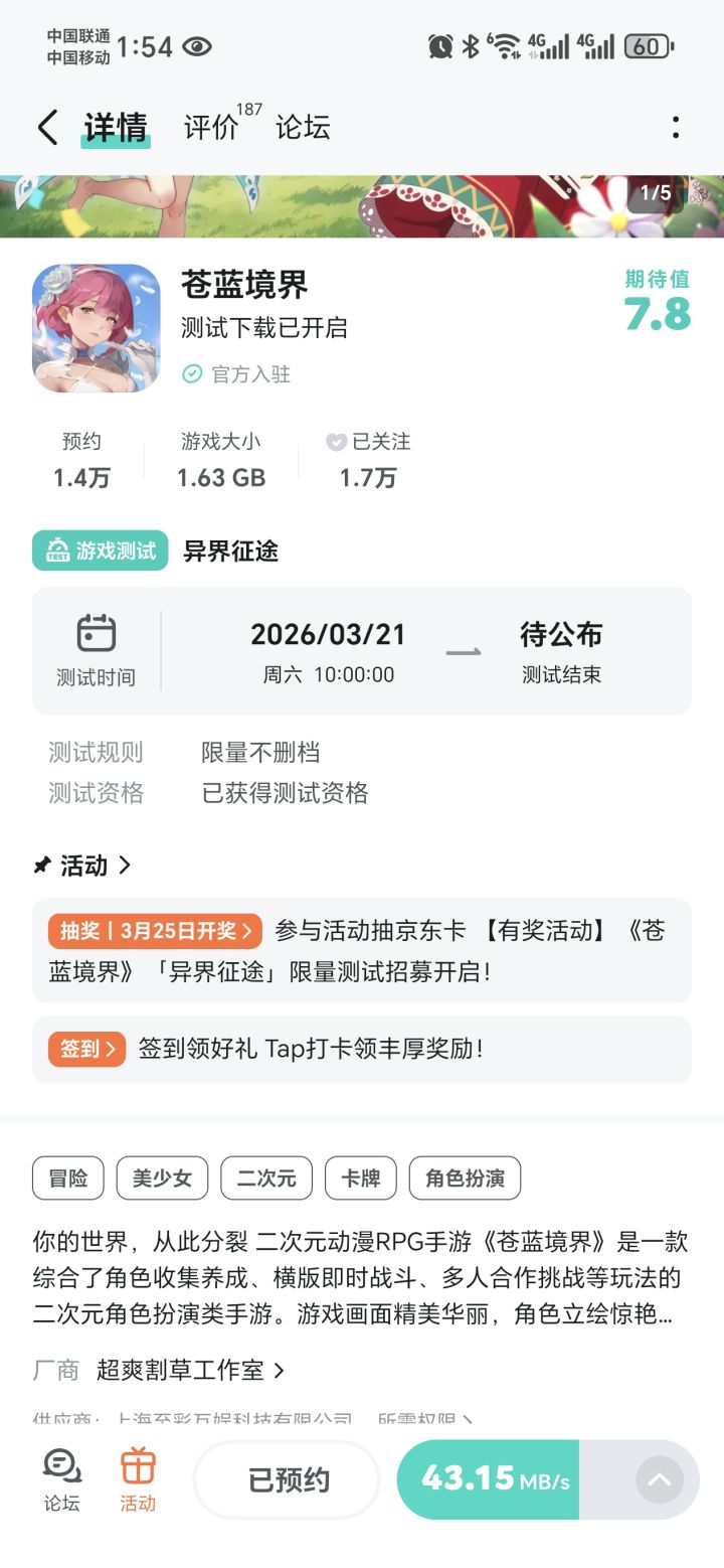 苍蓝境界测试