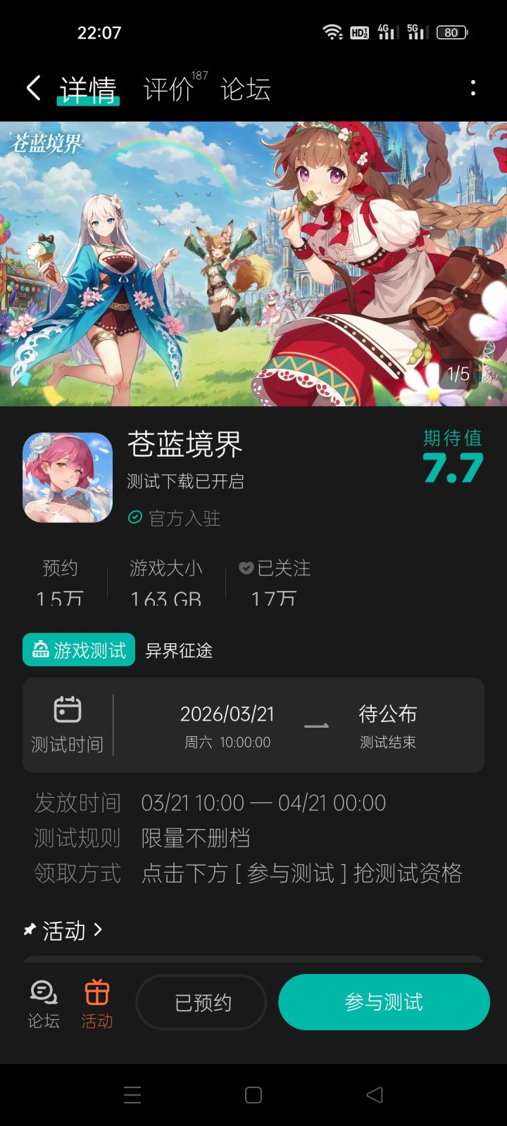 你的世界,从此分裂二次元动漫RPG手游《苍蓝境界》是一款综合了角色收集养成、横版即时战斗、多人合作挑战等玩法的二次元角色扮演类手游。点击立即报名测试:【参与方式】1.关注《苍蓝境界》且发新帖晒截图2.在本帖下方评论区分享发帖链接即可【活动时间】即日起~2026年3月25日 23:59【活动奖励】京东卡,共5份【注意事项】1.仅有符合活动要求的评论会被视为有效参与活动,若回复内
