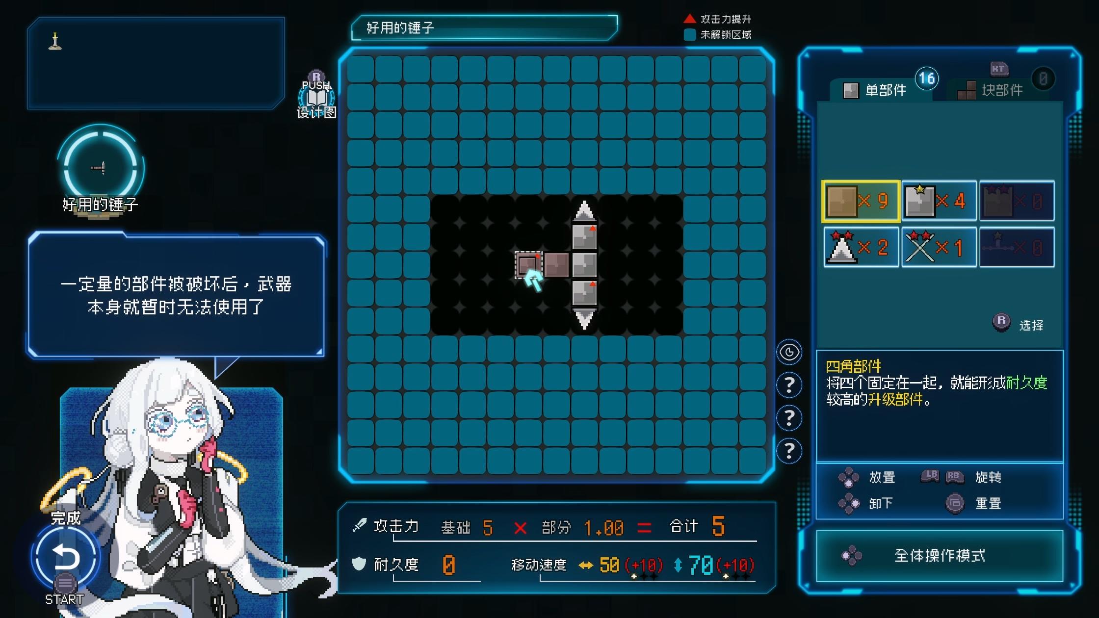 武器的攻击强度,和玩家对武器的改造和外形有关,在探索过程中会有找到不同材质的武器材料,可以依托于默认的环形控制器在上面改造武器,改造武器的过程可以通过右下角的面板看到武器的各类属性。