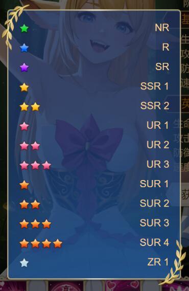 《伊利亚》的英雄一共分16级,按颜色定义分别为绿、蓝、黄、粉、橙、银;------------------------------------------------------------------------------------------------我们所说的SR级就是“紫卡”,是最基础的狗粮,只能升到SSR级;SSR是英雄的起步星级了,SSR的英雄升星级别没有上限
