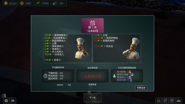 《Service Please》是一款经典的模拟经营游戏,玩家将扮演一个餐厅的老板,从零开始打造一间上好的餐厅,比如说扩充桌椅,补货以及打广告等等操作。游戏模拟经营的部分还是比较浅的,比较像开罗游戏的玩法,餐厅内全是自动的,并没有太大的操纵空间。玩家要做的就是根据任务表来完成任务,然后获得金钱,再把这些钱投入到餐厅建设中,以此获得一个正向循环。再就是本作目前正处于抢先体验阶段,一些内容还没有完全