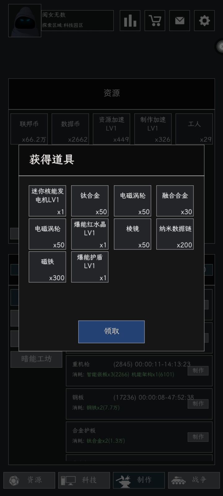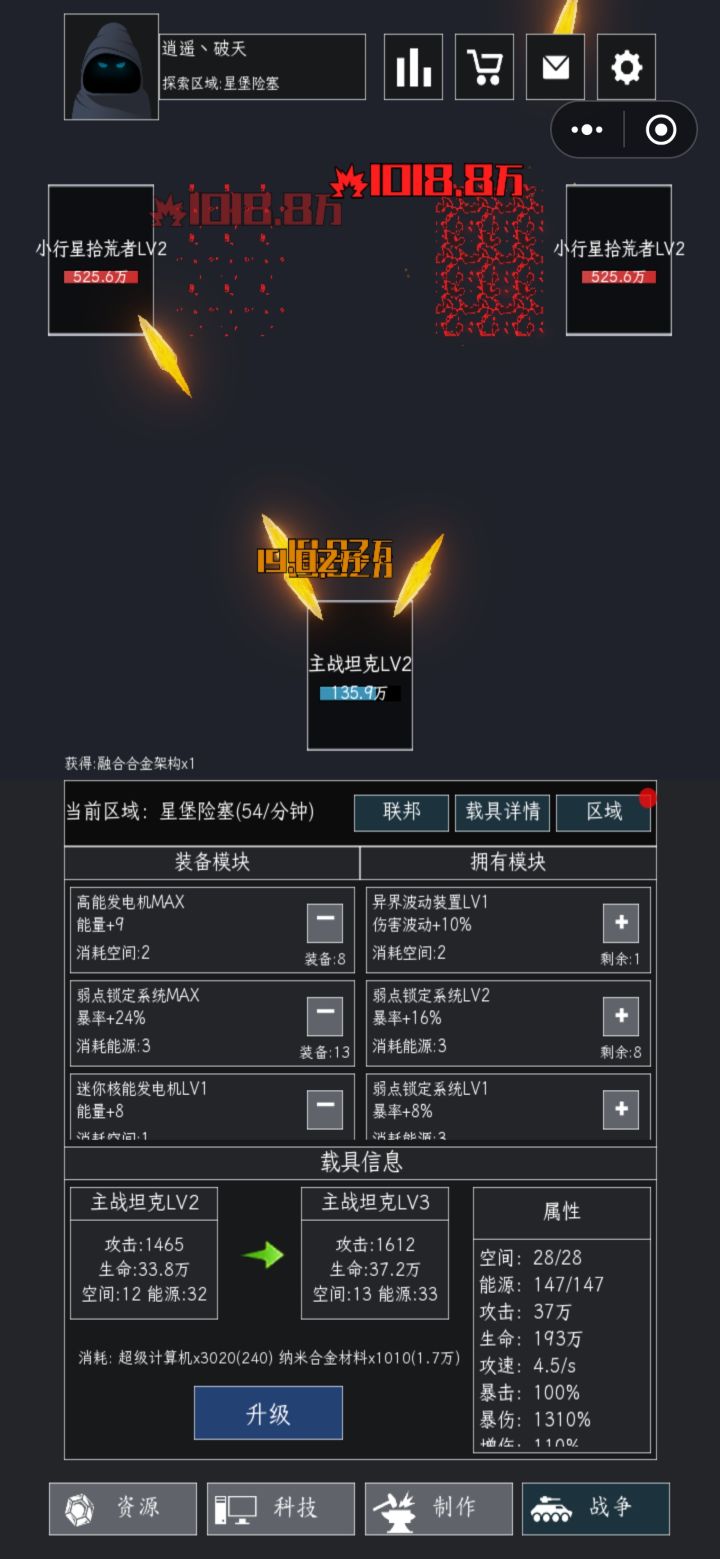 玩法也简单工人挖矿和打怪得到的材料可以用于科技和加工。以提升工人挖矿效率,提高载具战斗力。这里有一个友好的地方。装备拆成零件和高级零件拆低级零件不会损失材料。