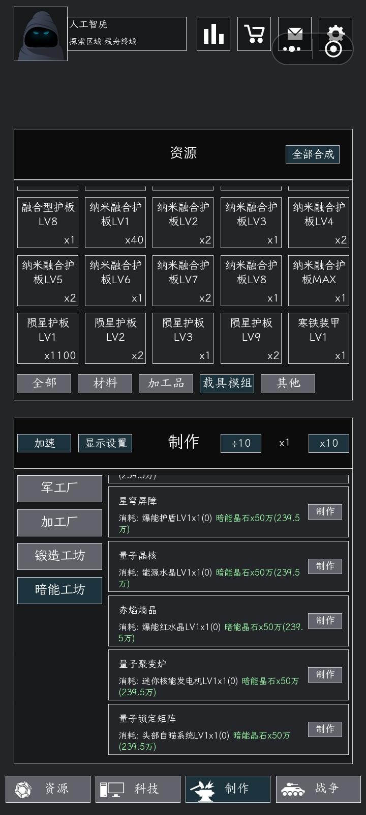 制作暗能模组会消失,之前制作了好几个量子聚变炉和量子锁定矩阵,都没有,暗能晶石也不返还,之前有六百多万的。