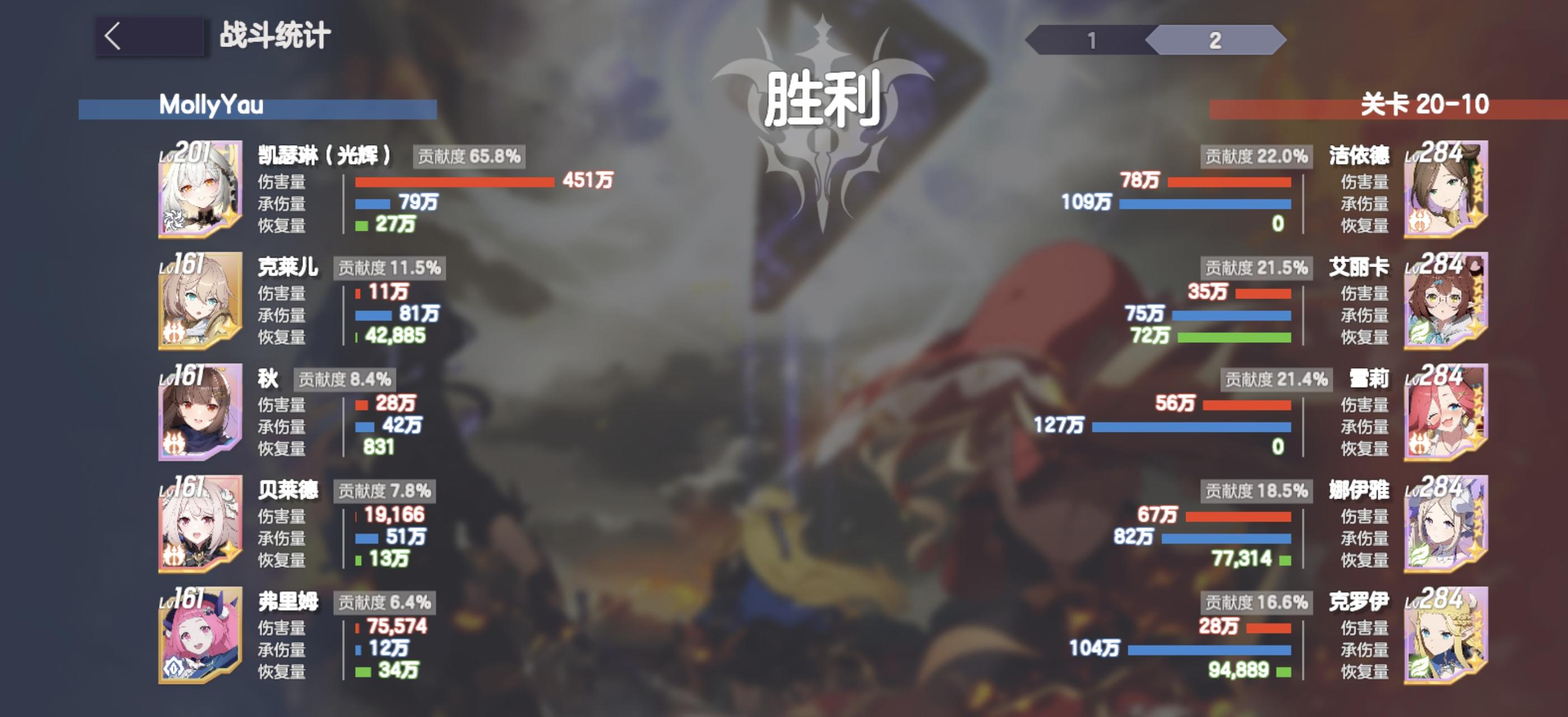 因为最开始玩的号太非了,新建了号第三天才开始玩,也没抽到小天使,所以推图进度比较落后。顺便说一下几个自己的游玩体验。(不一定对)1、新手10连,达芙妮或者伊迪丝选一个开局。如果出了达芙妮,送的4个自选箱子全部选伊迪丝,出了伊迪丝,自选箱子选一个达芙妮前期推图,剩下3个箱子选伊迪丝,达芙妮一只就够了,甚至星级越低她吸收的伤害越多打出的伤害越高。2、推图阵容,最好就是伊迪丝、光辉凯瑟琳、达芙妮、