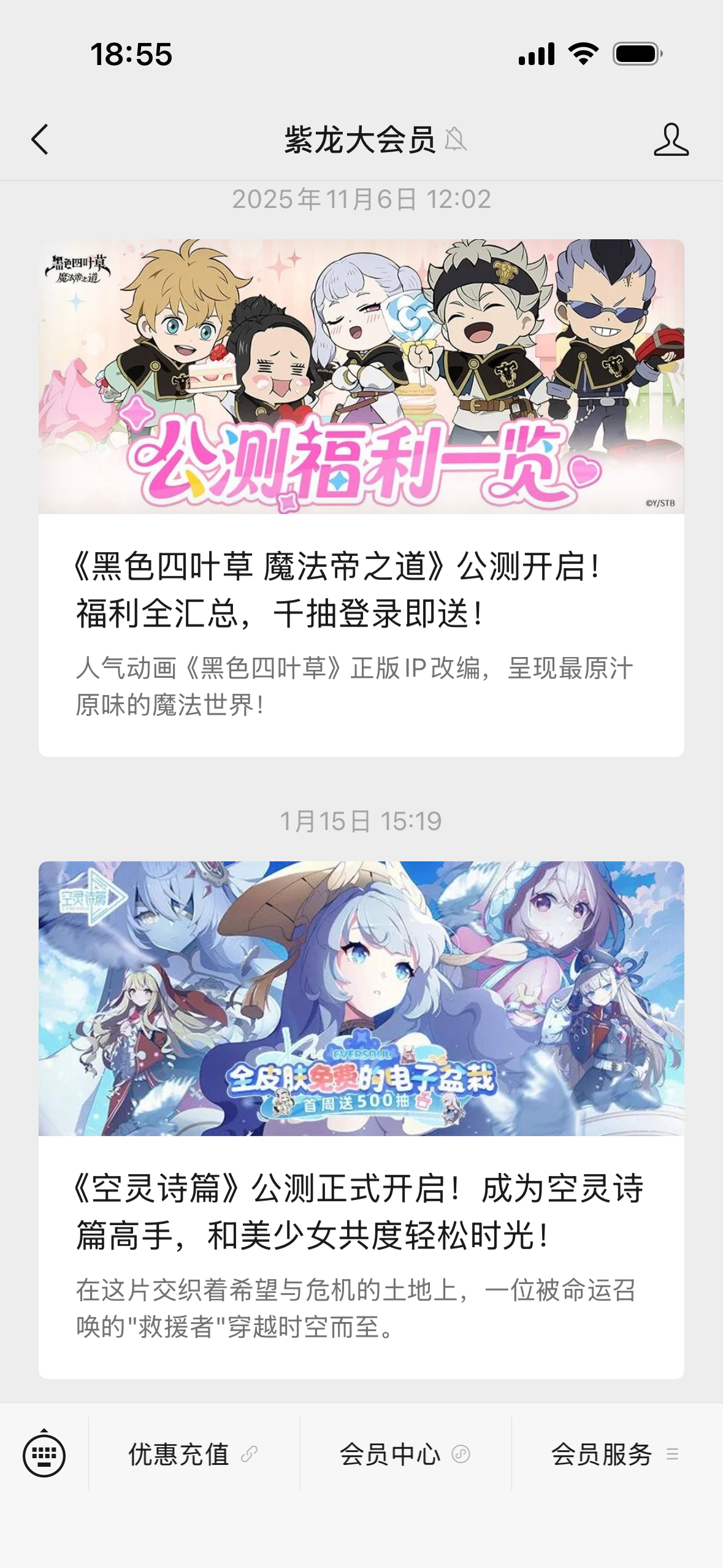 微信搜“紫龙大会员”,下面左边“优惠充值”,然后选择游戏进去1元能首充,我就去年龙魂旅人充过1元,后面游戏我都不想充了。上一个帖子我抽了炼金,这个池子有个说明,新角色UP结束后会加入,没说混沌除外,所以一般可以留着混沌300没到不朽或者打算不朽到5的才搞,但是我呢运气还行,300到不朽了,所以攒到10张券打算试试手气看能不能补个new天使,所以也没什么亏不亏的,各位带佬不用担心,我计划着的。