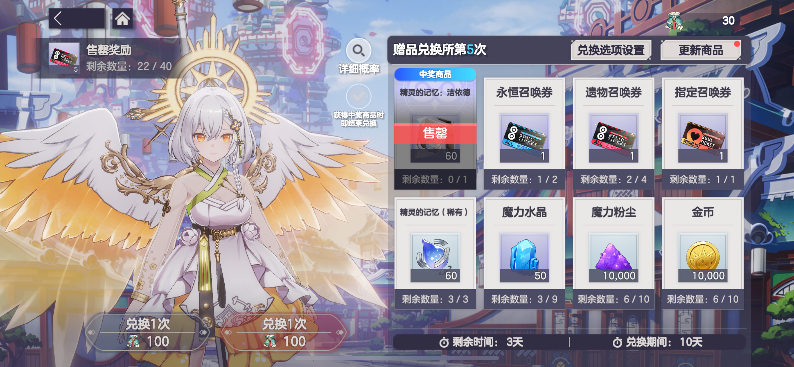 这是第三个号,第一个号抽光辉抽废了,扔了。第二个很欧,400抽不朽4的光辉,400抽不朽女王,然后抽赛林抽废了,但这不是重点,重点是光辉20关后没有一点用了,要么进去被秒,要么开出大了没伤害,怎么办呢?瞎捣鼓呗,又抽了200抽的伊迪斯想不朽5,最后看有人买初始号,就想着看看,第三个初始号,没抽光辉,也没抽赛林,就是为抽天使去的,反正是买了4个初始号,全部资源用来抽天使,基本都是抽了3个,然后