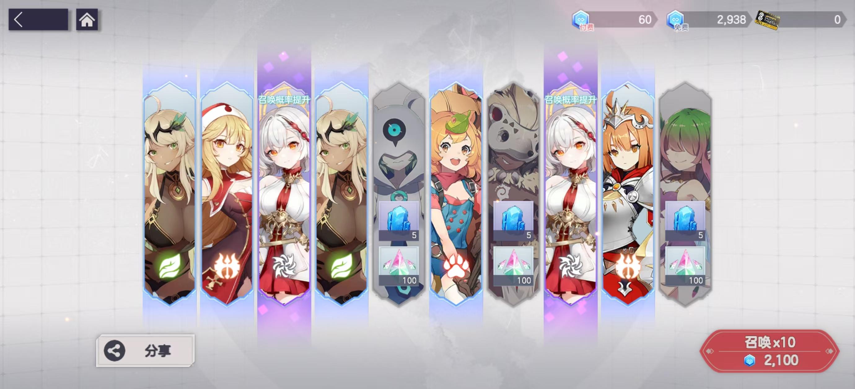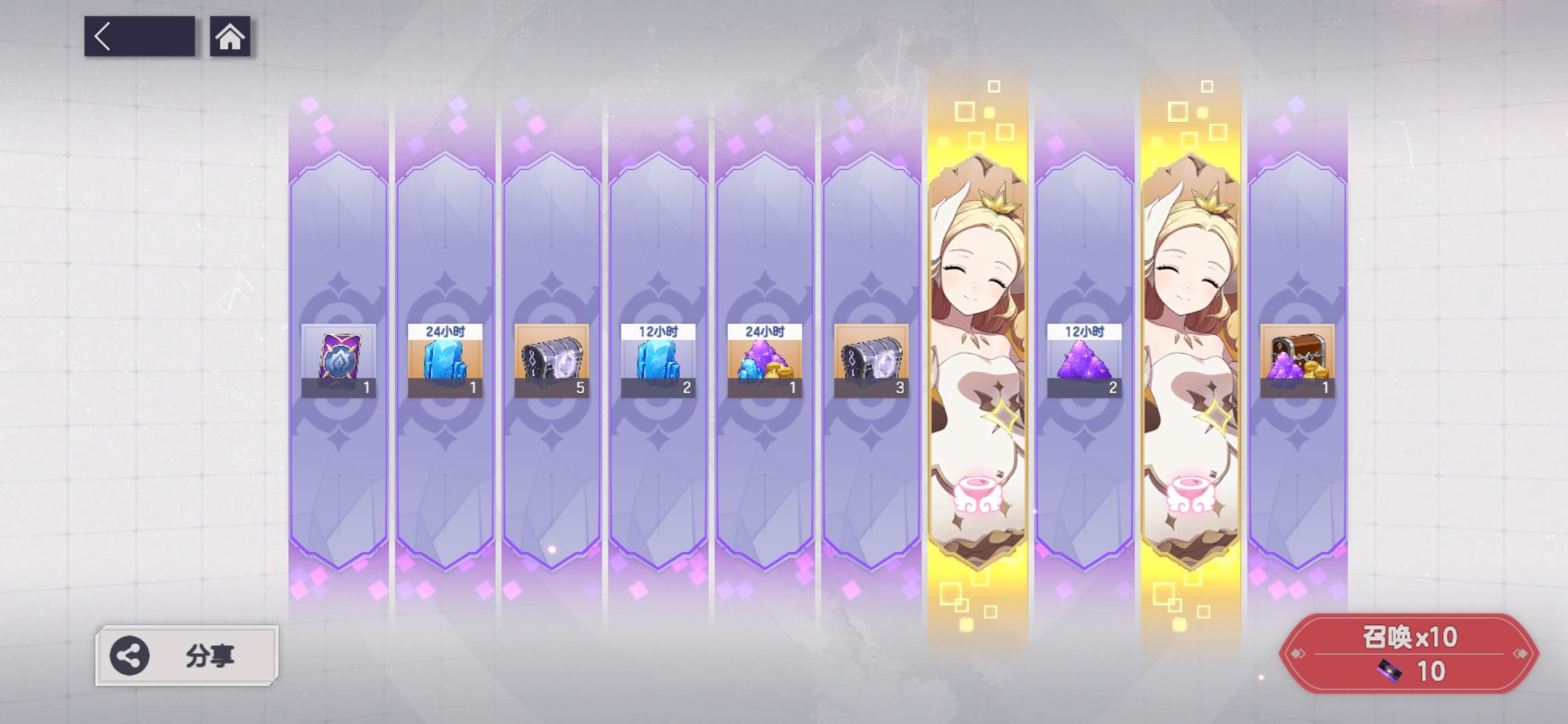 玩其它游戏时看到公会的人推荐来玩的,没想到运气还行,就是太肝了,前几天就是不断在推图>攒钻>抽卡,不断循环每天几个小时泡在游戏里,不像其它玩的游戏半小时完工下线,好在手气还是不错的。最后想说不是定向池抽到小天使根本就没法玩下去了,小天使绝对是起步阶段的人权卡啊,越了4.5倍战力推图没谁了,一个终结技加一个主动技直接收割全场。薇薇安的加速工具人也杠杠的,处处让你领先一步。塔莎打有突击