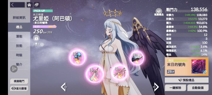 大天使打boss的时候比较强,推关的时候因为他是近战,会走到前面去,吃到不明aoe会暴毙。阿巴顿是远程,被动是每4秒有300%的群体伤害,推关的时候很好用,出伤速度比较快,10秒钟就可以把敌方后排脆皮清理掉。