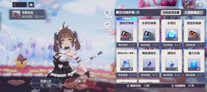 参与版本活动共可获得15700永恒石、248抽精灵召唤、246抽遗物召唤,更有8套特别女仆皮肤等你来领!福利总量一览:■ 永恒石【永恒石】*15700■ 召唤资源【永恒召唤券】*217、【指定召唤券】*21、【艾丽卡的炼金术票券】*10、【遗物召唤券】*246■ 免费皮肤【特别女仆时装】*8■ 史诗精灵【天使型精灵召唤券(史诗)】*1、【精灵的记忆(史诗)】*18