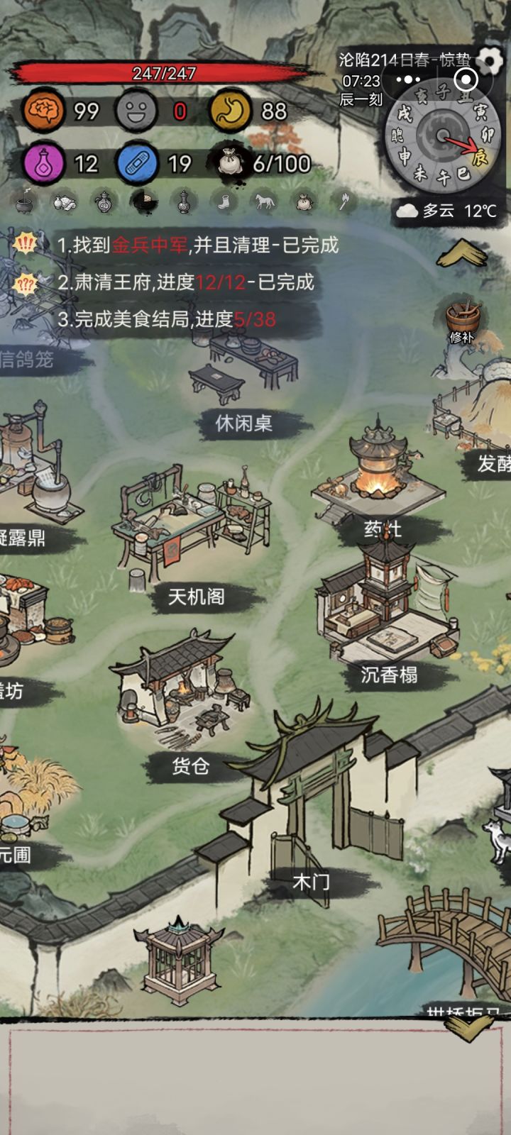 嗯关卡通关了,美食还没有尝试,随便聊聊一些个人看法。 1.首先早点打到戏院,然后往旁边看找到“寺庙”,把寺庙打完就有很多长剑碎片,就可以做长剑了,长剑攻击力比斧头高10左右。2.然后早点打民宅——衙门——监狱,打完监狱早点把百晓生这个NPC救出来,这个NPC提供的东西非常好用,然后把他好感度刷到4.5的时候需要注意,到5的时候他会给你送马车轮子,但是你必须在那一天把做马车需要的材料准备好,不然