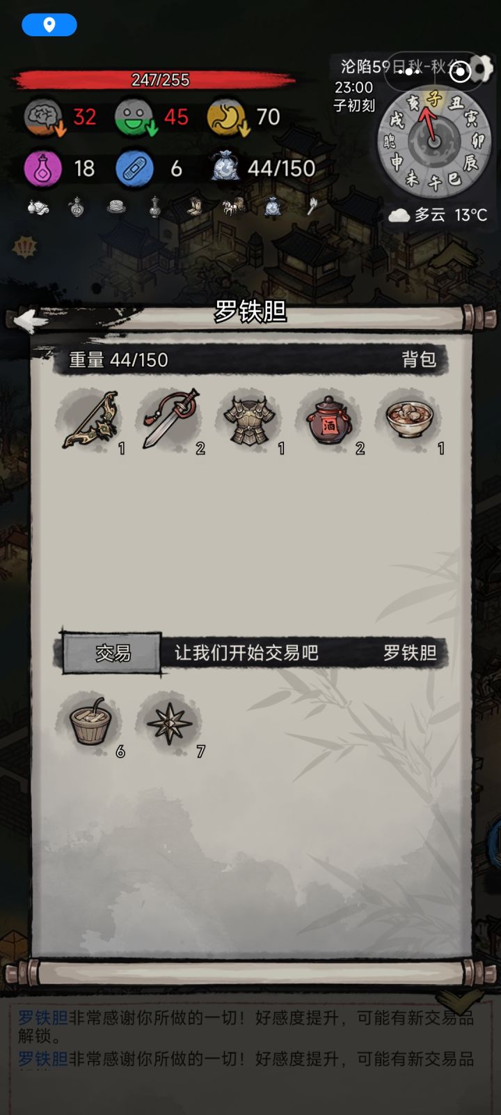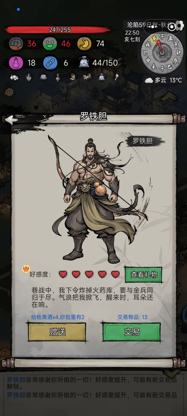 真的好恶心,他开的两个图我都打完了。好感满了还多送了很多酒。就是没有弓箭可以买。