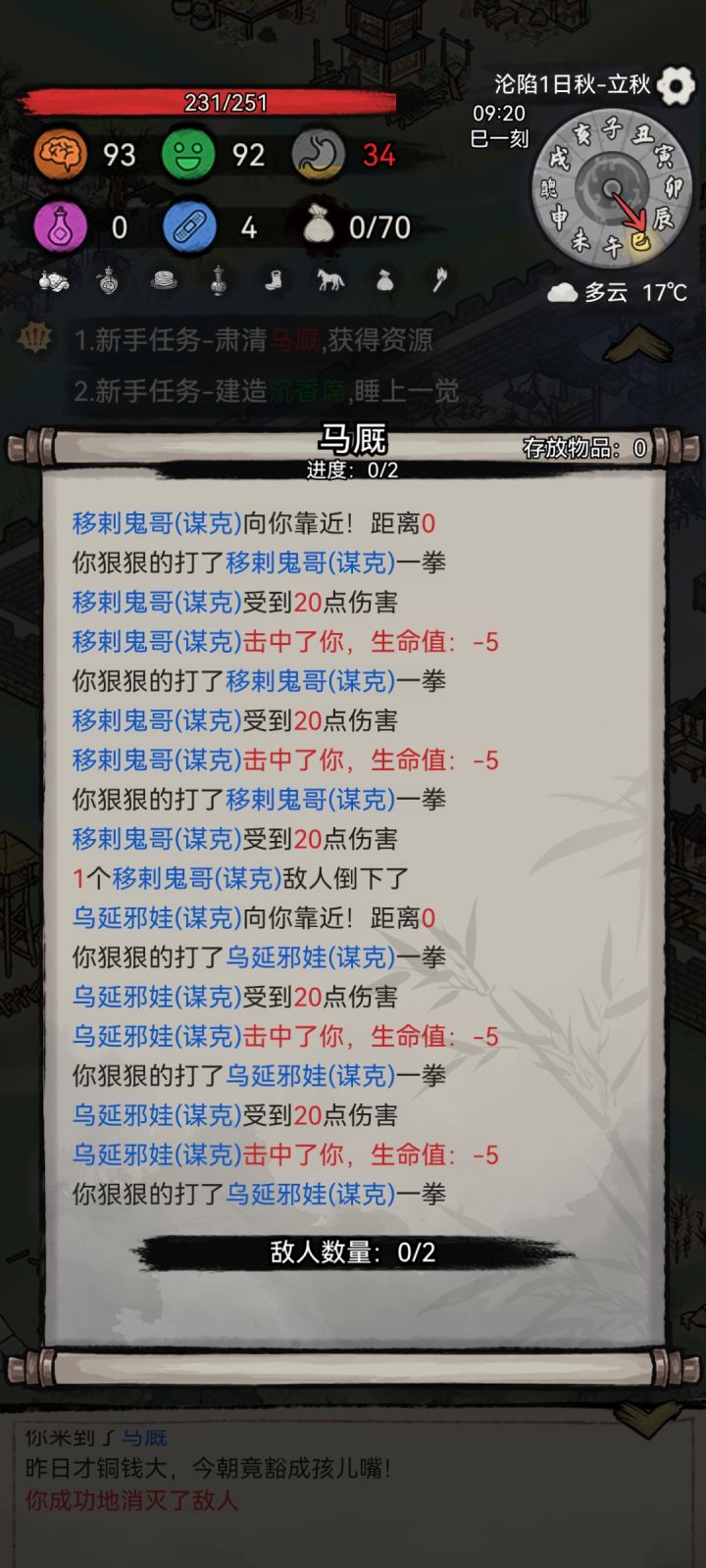 坚持到100天, 肝了7个钟还是死了(可能我玩的方法不对,太久了一局,还在摸索中)下面是我的一些小tips:对游戏不熟的朋友开局先不要看广告,进游戏随便打打怪啥的熟悉一下,游戏过程中是没广告的,游戏中除了打怪、进商店是不消耗时间的,其他的都会消耗时间(无操作也会),熟悉了再广告开局我选的是资源加成10%的人物,看完所有广告开局(这广告是真的多。。边刷抖音边点广告)图3开局前