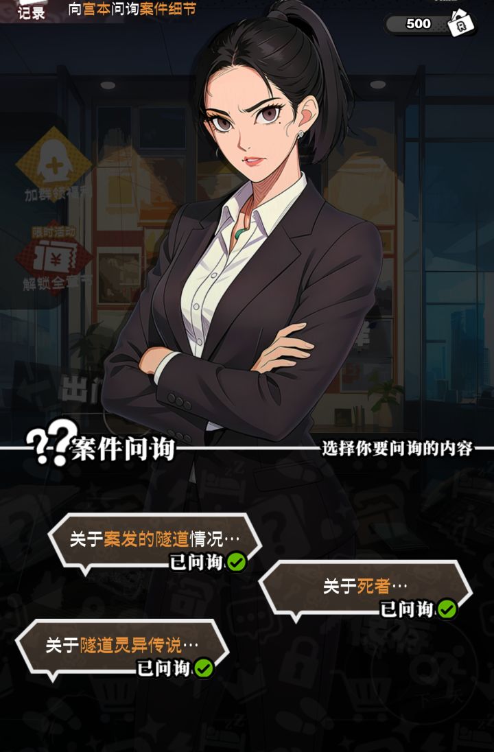 #逆时真探最初的审判 第一天只能合成一个线索只字不提,组合半天怎么都不成功,无奈跳过。第二天组合线索,组合成功的线索,只要退出推理板再进入还是会出现,非常烦人,而且线索散布的太随机,只能全局缩小才能勉强看到大部分线索,我也是真不理解为什么有些线索逻辑上完全可以组合却就是不行。广告也是强制你进入小程序,就算想老老实实看完三十秒也没招,玩的很窝火啊!立绘ai味真的很重。。。开头的女孩的丝袜都不完整,一