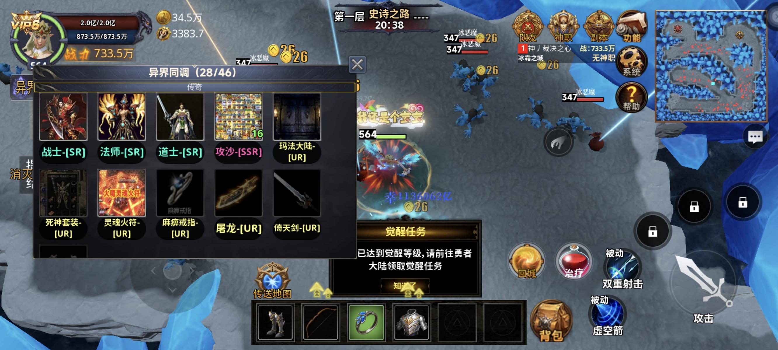 萌新刚玩先签到领抽奖券,抽完图鉴装备之后,角色目前推荐使用巨力神(加点可体质) 进游戏后左侧接任务(去新地图都要先接任务,没接任务基本等于白打),接完任务往左走打蜘蛛,升到10级后回城觉醒技能(选第二个都),然后可以往上走打野猪或者接着打蜘蛛(一般选野猪打就够了),一般升级到30级左右差不多,顺便把武器和衣服升级到满(满级后进阶需要宝石打巨龙获得) 然后蜘蛛的地方往下走打幼龙(掉落的合成宝石是