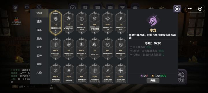 此外还有卡牌升级,即游戏内肉鸽选项,可以理解为技能升级,提升的是技能基础属性。每一个技能都需要碎片和金币都满足才能升级,是双重限制。