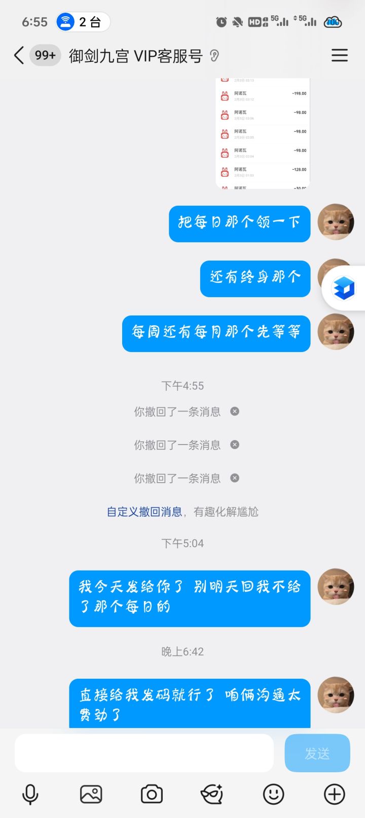 开放性游戏,纯散养,整个每日充值,一天找不到客服人,上午11点半问下午两点半回你,我都以为没有了累充礼包呢,要不是看一眼有人嘞我了,我还以为没人了呢,我回完人又消失了,客服一天就上一句话班是吧,那你在游戏里面整一个客服qq干啥呢,直接不整多好,多此一举,跟没有有啥区别,还让人白白火大。这今天不回我,明天每日充值就要给我赖了?qq群里面客服也是空气,就是有这个人。问啥也不回你,真是牛啊。好游戏希望大