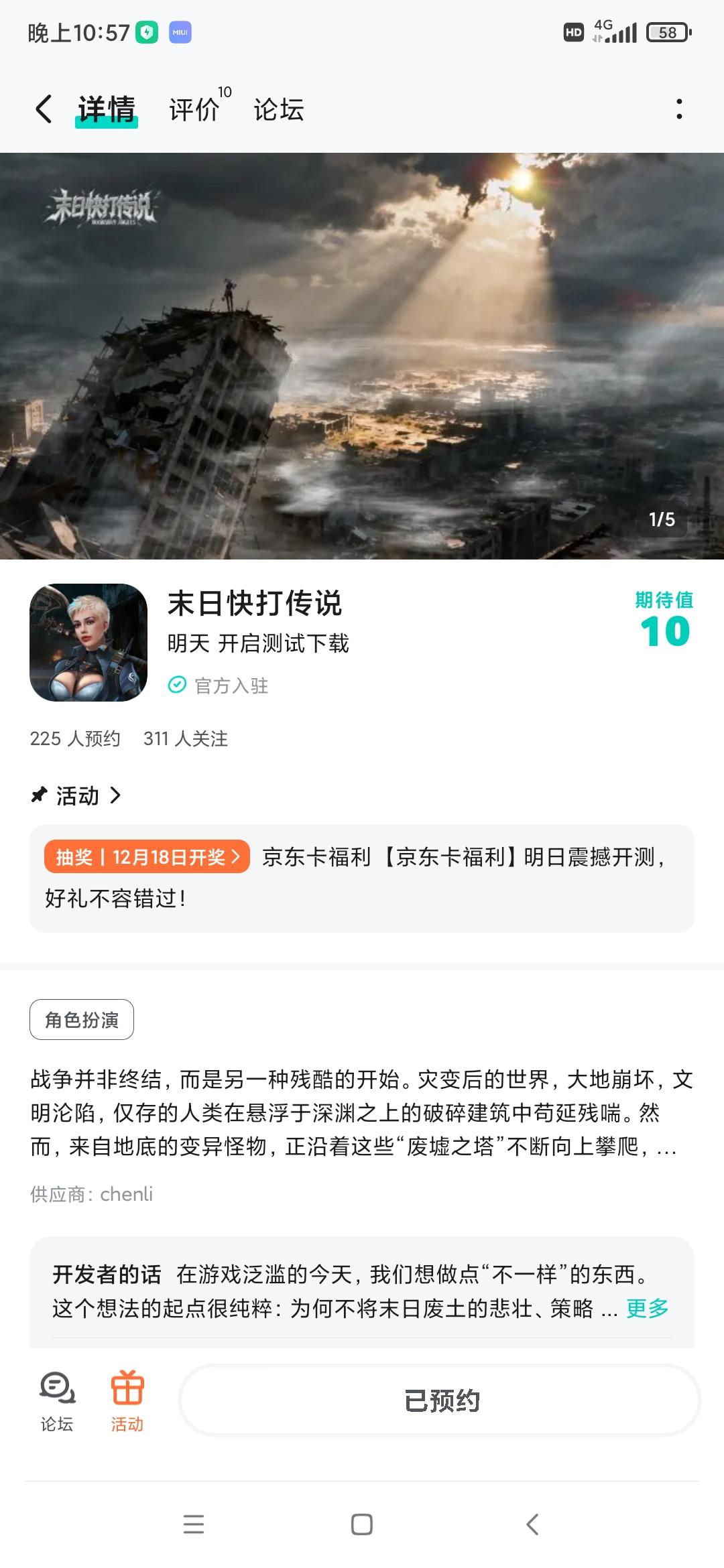 论坛限时活动《末日快打传说》关注留言抽 10 元京东卡