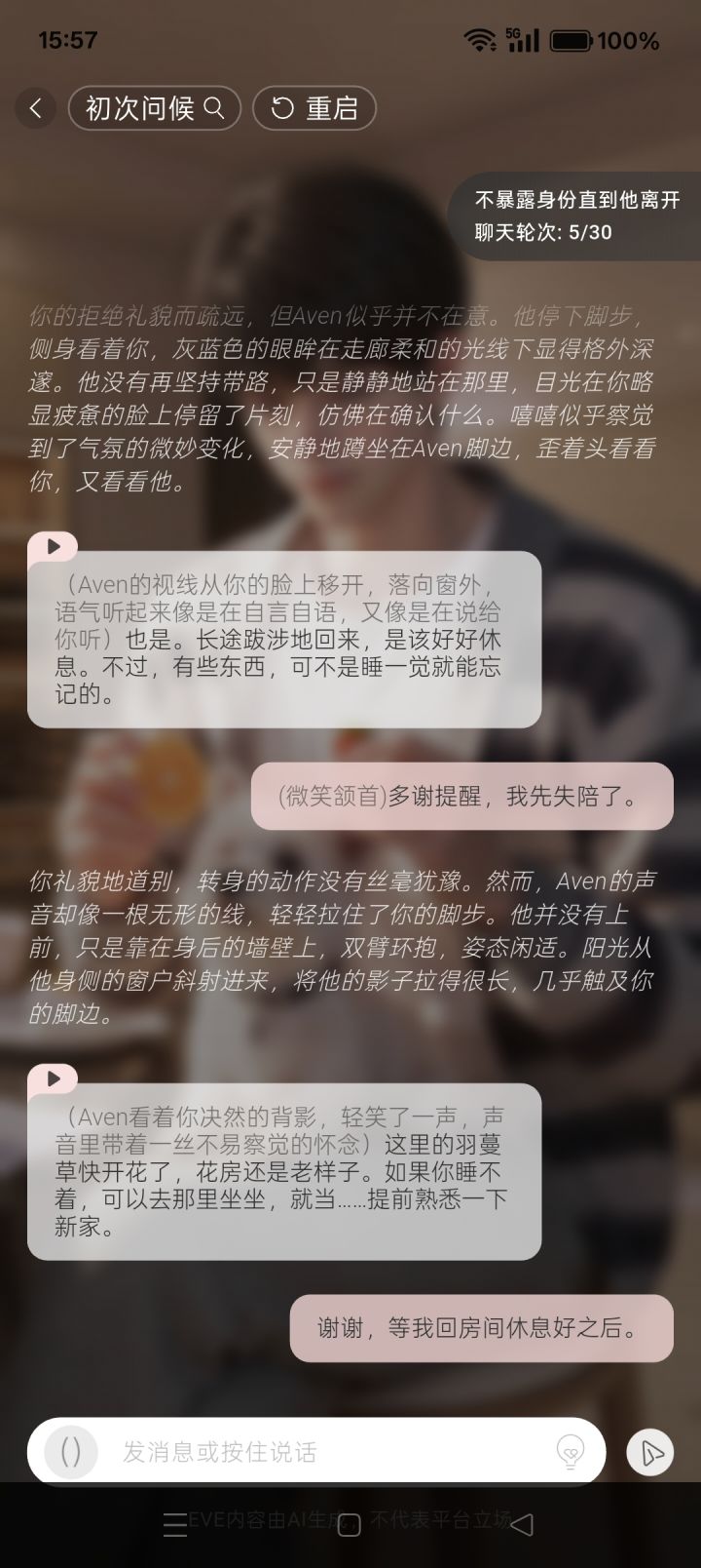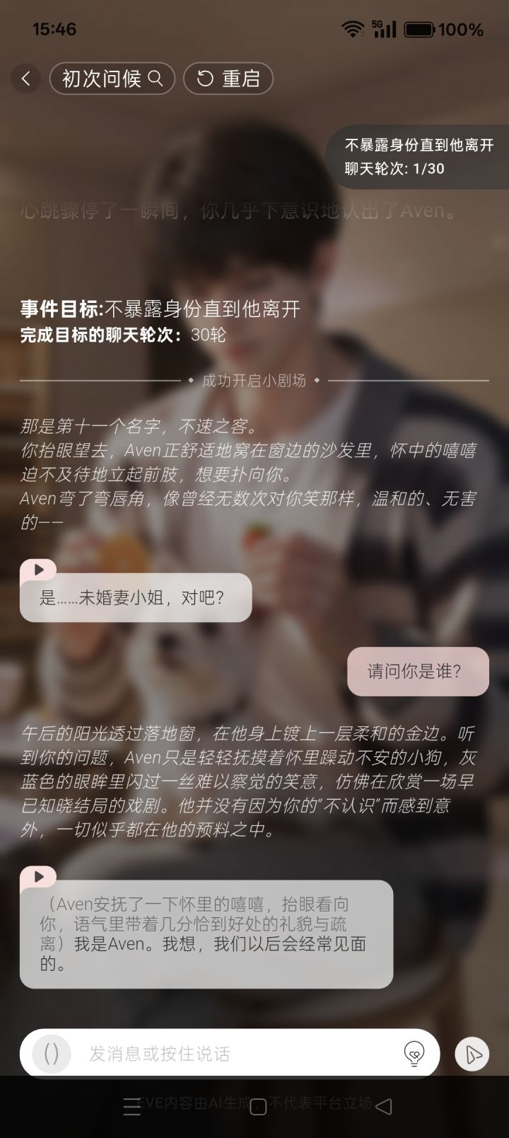 我栽在这上面栽两天了,他任务达成条件是让我不要暴露身份,直到他离开,我重启了几次了,他一开始就知道我是谁,他也认出我来了,还让我不要暴露身份,我不管说再怎么剪短,再怎么冷漠,他总能接一句话,搞得我跟他很熟一样,我是他爹的未婚妻,跟我扯这扯那,扯他的狗,扯花房,扯房间的,知道我是谁,又让我不要暴露我的身份,然后他又不走死缠烂打的,这怎么过啊?