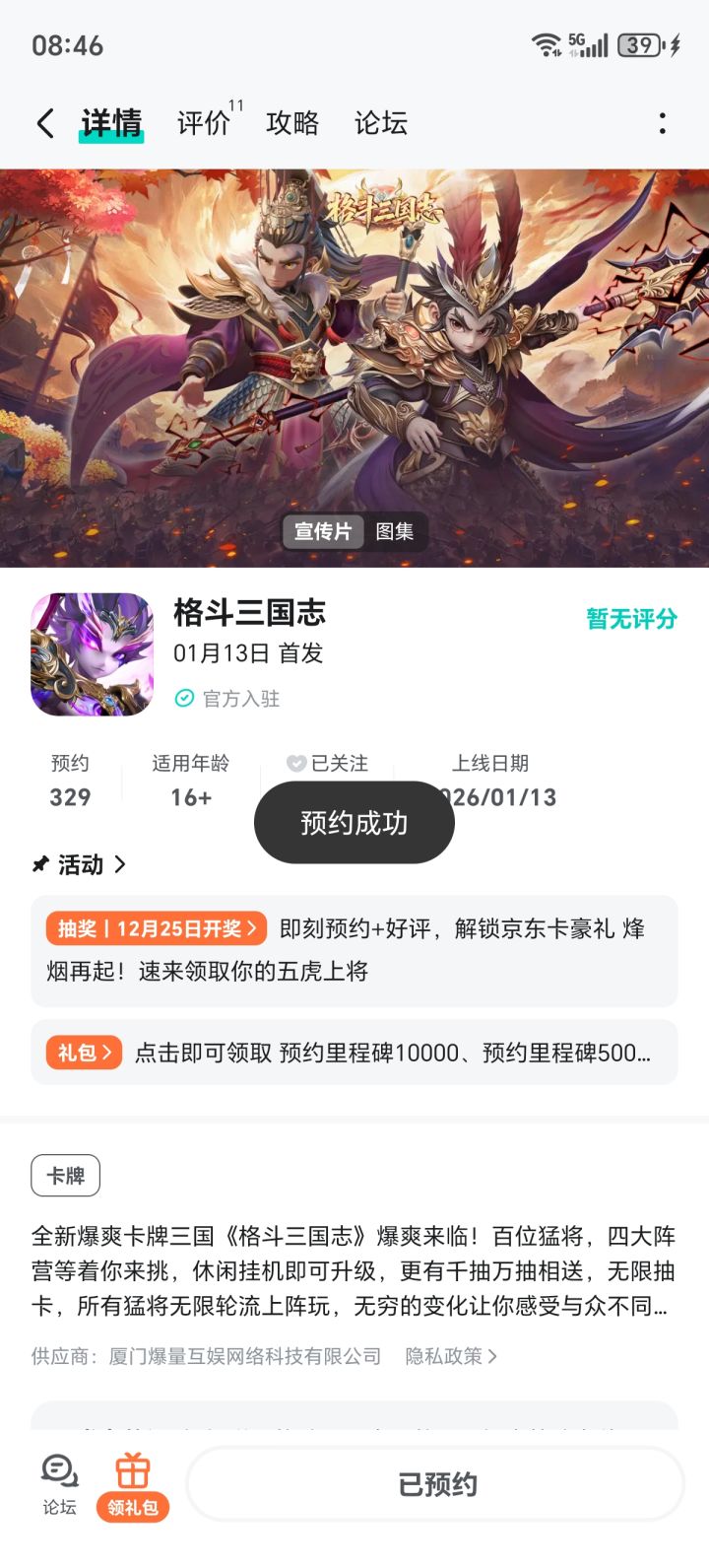 已预约,已关注
