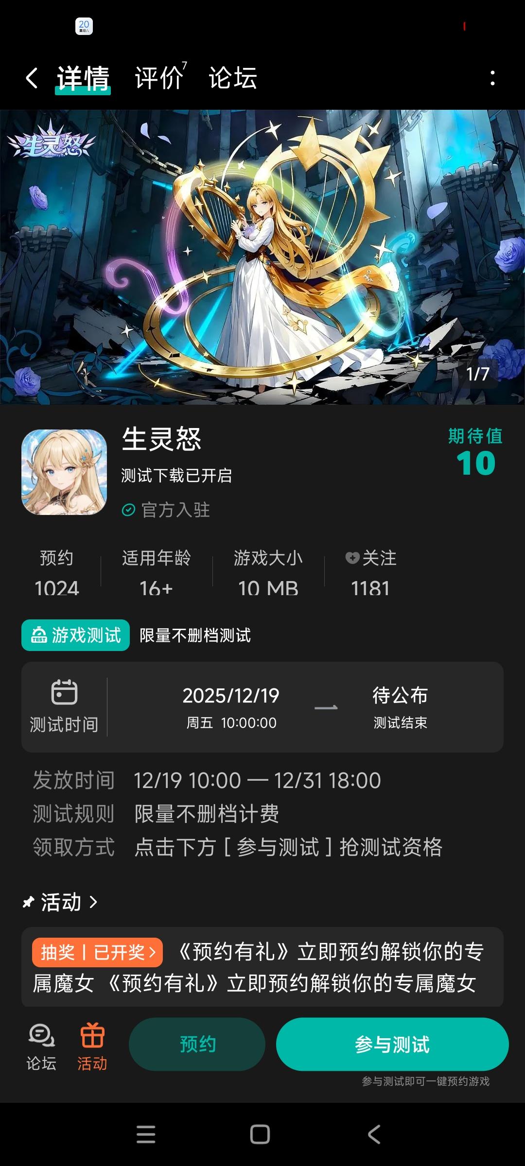 《生灵怒》不删档测试定档12月19日!极致唯美画风,百位唯美女神等待邂逅。2025年12月19日,《生灵怒》不删档测试开启!在休闲放置中体验策略与养成的纯粹乐趣。从最初的概念构思,到一次次的美术迭代、玩法调优、BUG 修复,我们始终以 “打造一款让玩家真正喜爱的魔女冒险手游” 为初心,认真对待每一个细节。如今,《生灵怒》 终于迎来了和大家正式见面的时刻,这份激动与喜悦,想与每一位陪伴我们的你