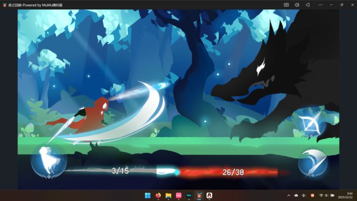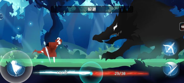 进入游戏后画面就3个按键,剑攻击,弓箭攻击和闪避。虽然没有教程,但是还是比较简单好上手的。