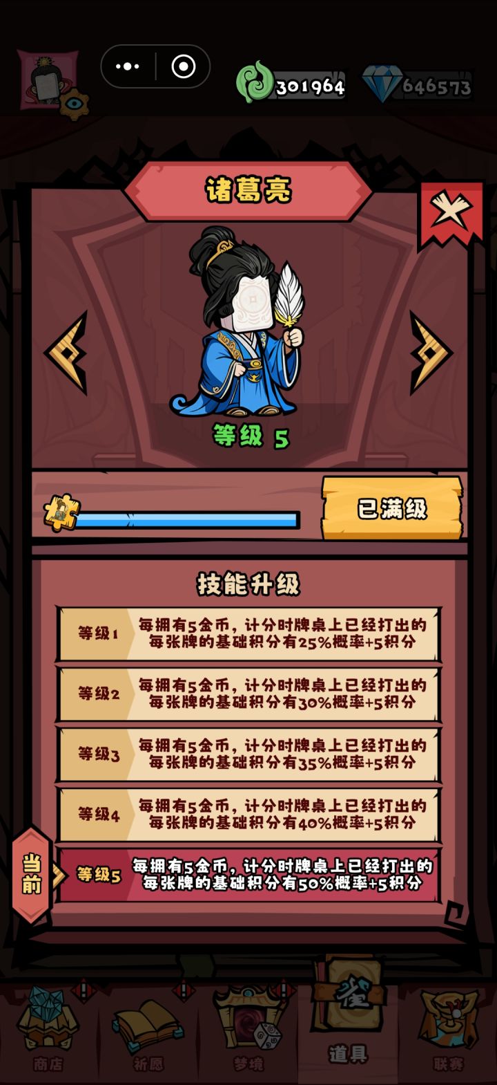 只说最后世界决赛的思路,前面的关卡也适用,不过世界决赛更难一点前三局优先拿做牌型的雀牌,打大三元或者大四喜,需要字牌优先级:孙行者>沙悟净>嬴政>多闻天王,拿到孙行者就可以做大四喜加十八罗汉了,拿到其他的或者一张都没拿到优先做大三元前期能拿到哪个拿哪个后面再换也可以,决赛第一轮一张都拿不到就可以重开了,第二轮基本过不去,不是世界决赛的话晚点抽也可以然后是拿加倍数的牌核心诸葛亮攒金币增加基