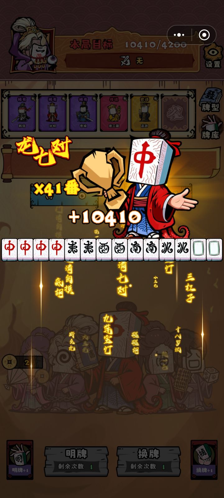 多闻天王起手9张字牌猪八戒+19牌概率诸葛亮关羽财神东皇太一有就选,增番选十三幺番数
