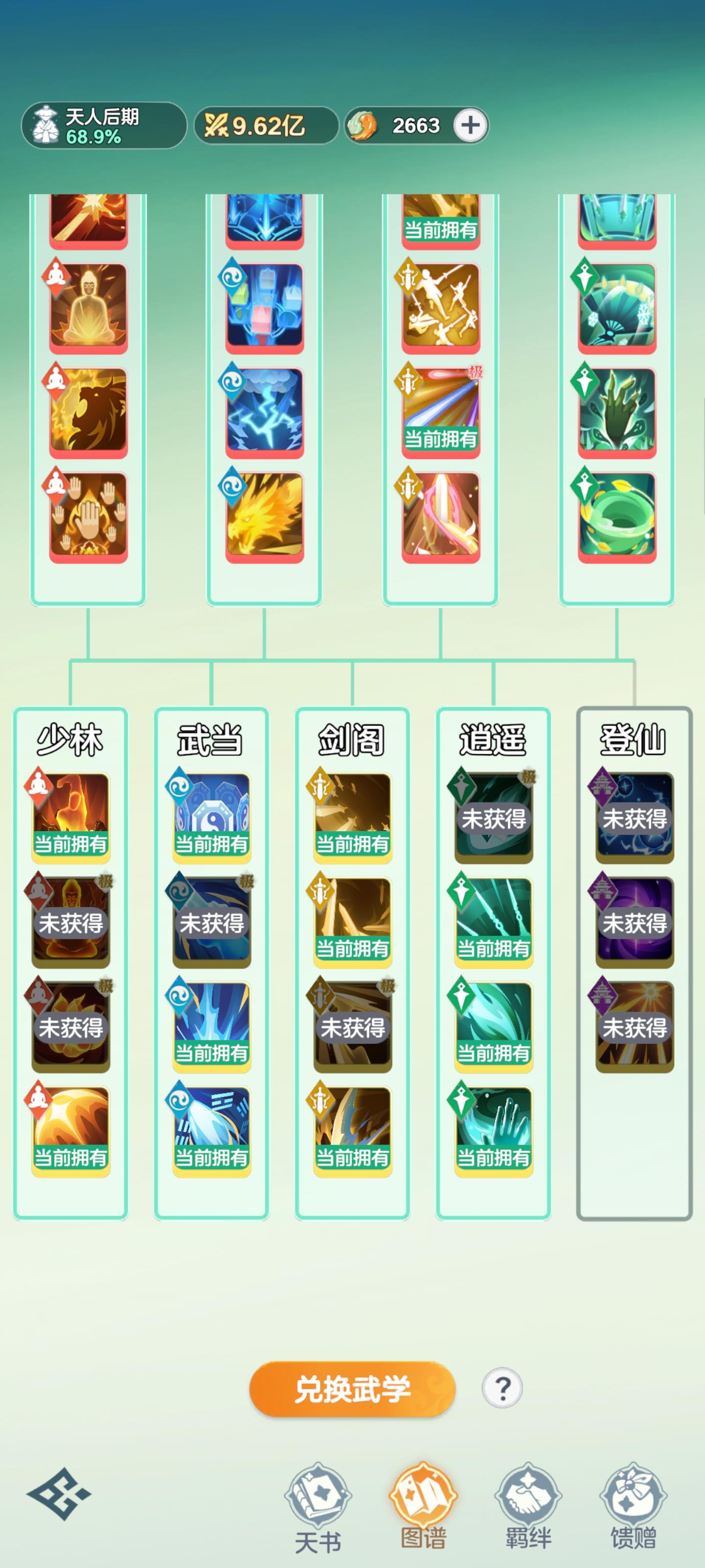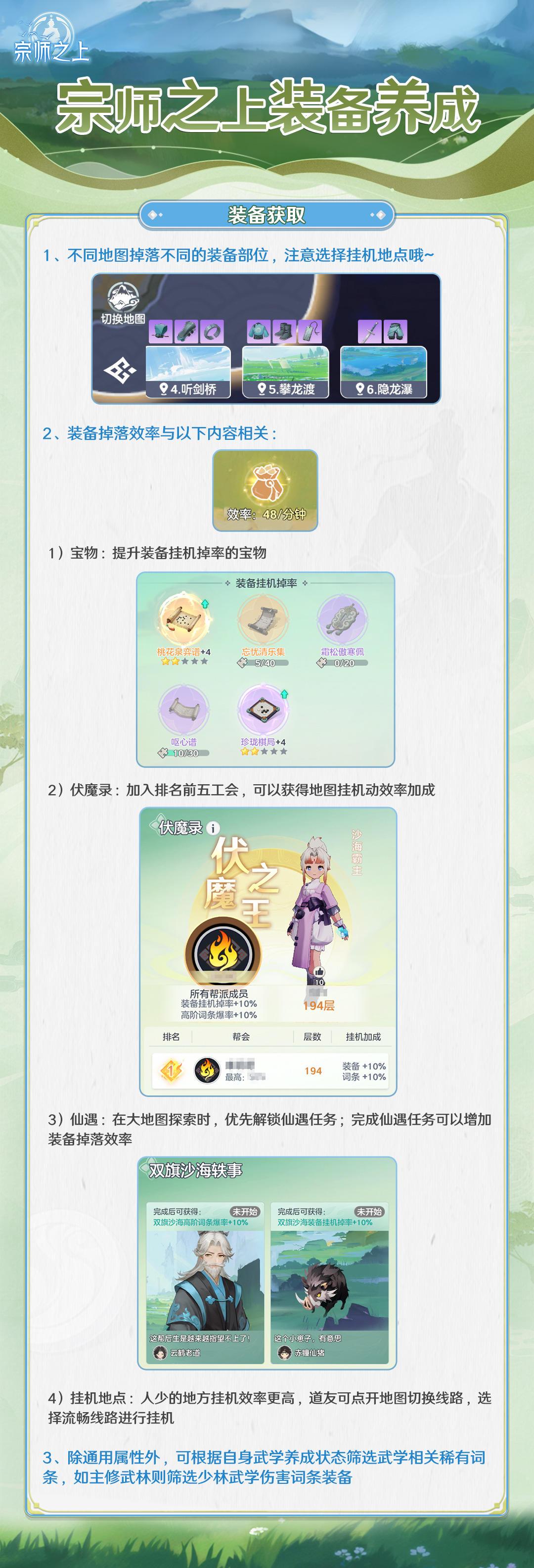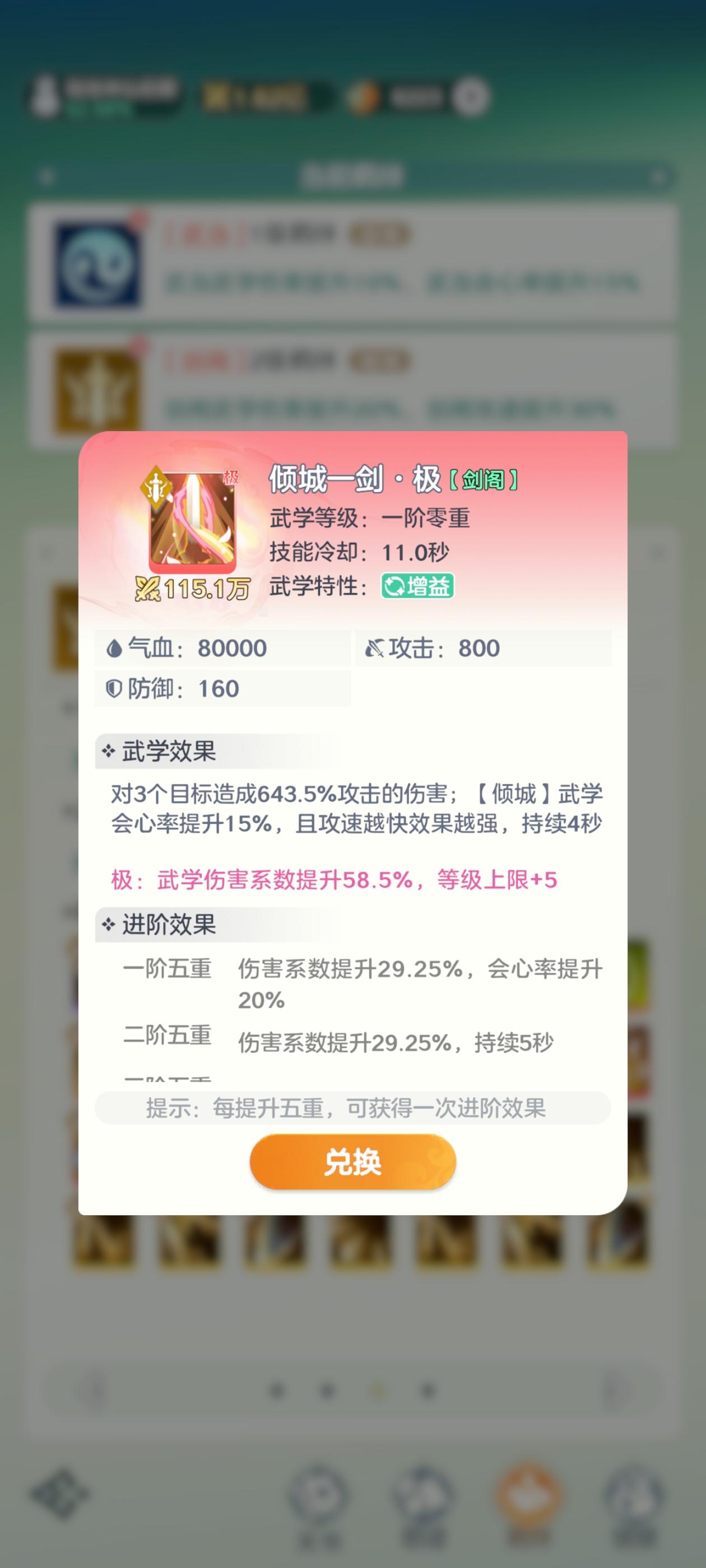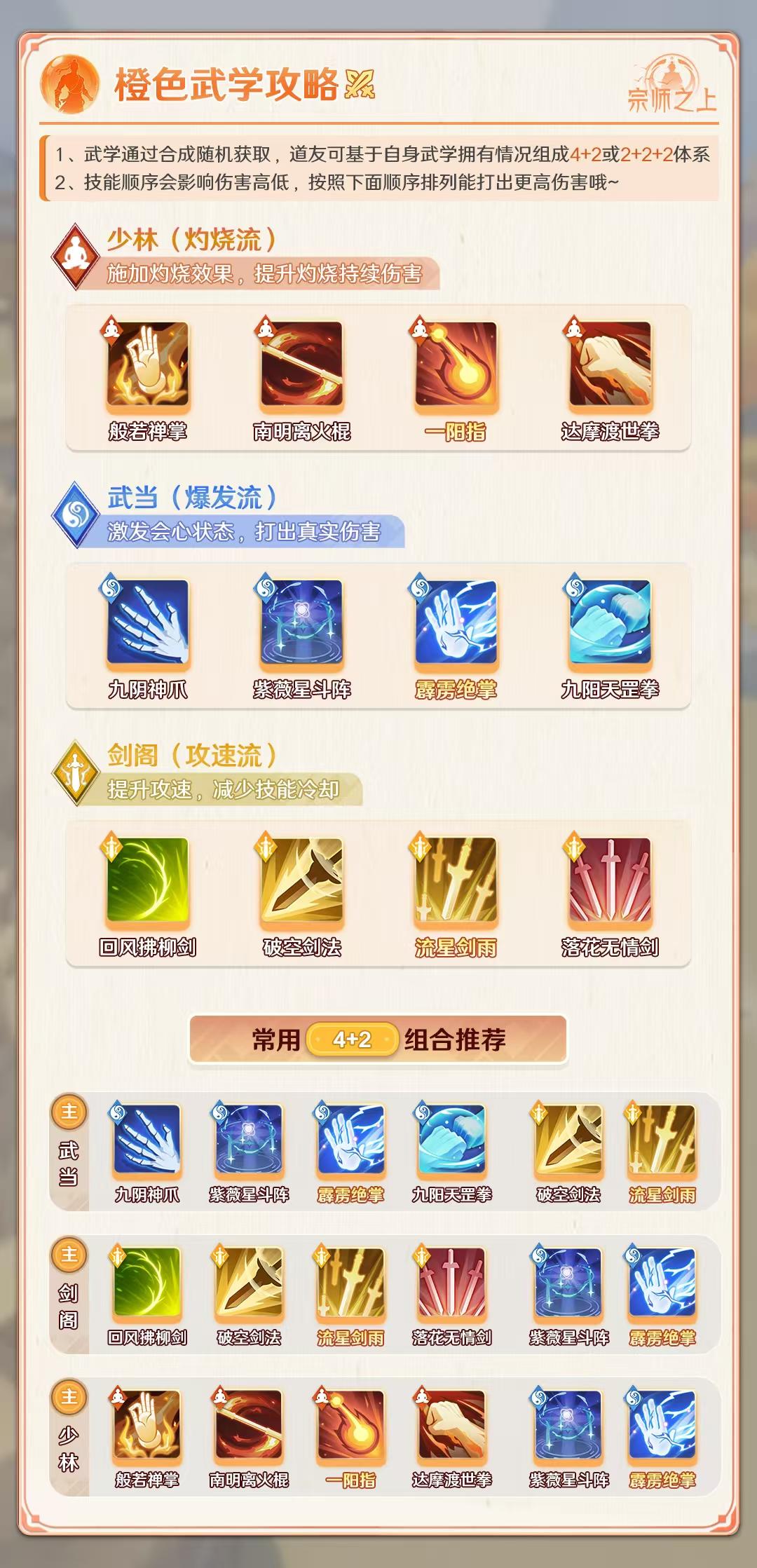 发排行榜的图片好像会被屏蔽1.跨大境界之前不需要把所有的武学全部升级成当前武学的品质,如大宗师的时候不需要全部生成红色的,最好搭配四个橙色+两个红色(资源不够红色的伤害能够整体配置超过橙色) 2.心法资源不能重置,前期最好不要进阶(前期时间短,心法更换快),后续如果卡大境界时间过长,可以去补前面的心法 3.如果开出三个大地图的装备,颜色相同,优先去倒数第二个地图刷怪(一片区域的怪资源是相同的
