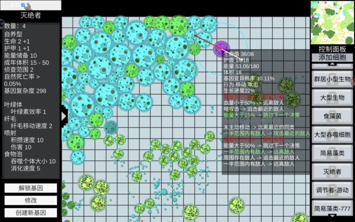 细胞行为模式也会随机增删,出现优秀族群或弱智⊙︿⊙