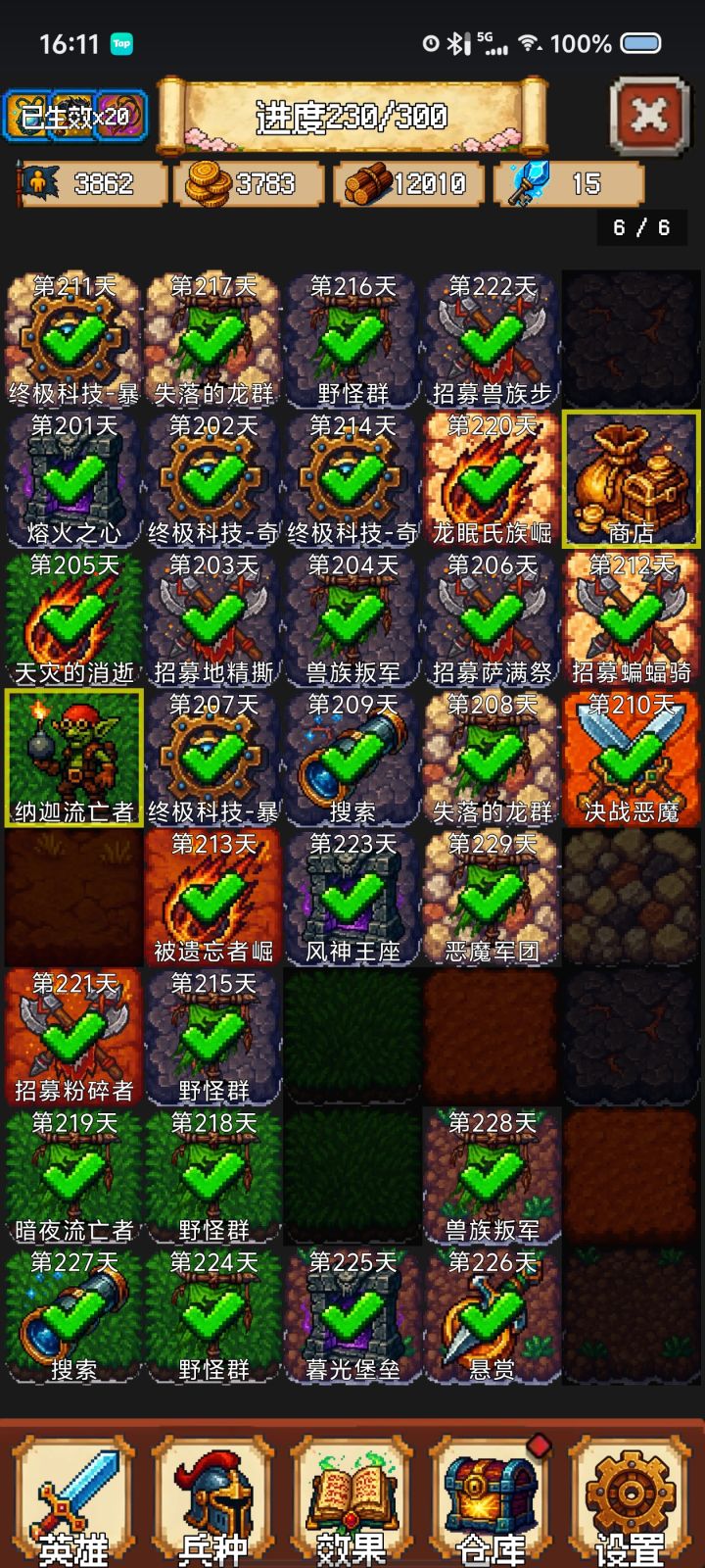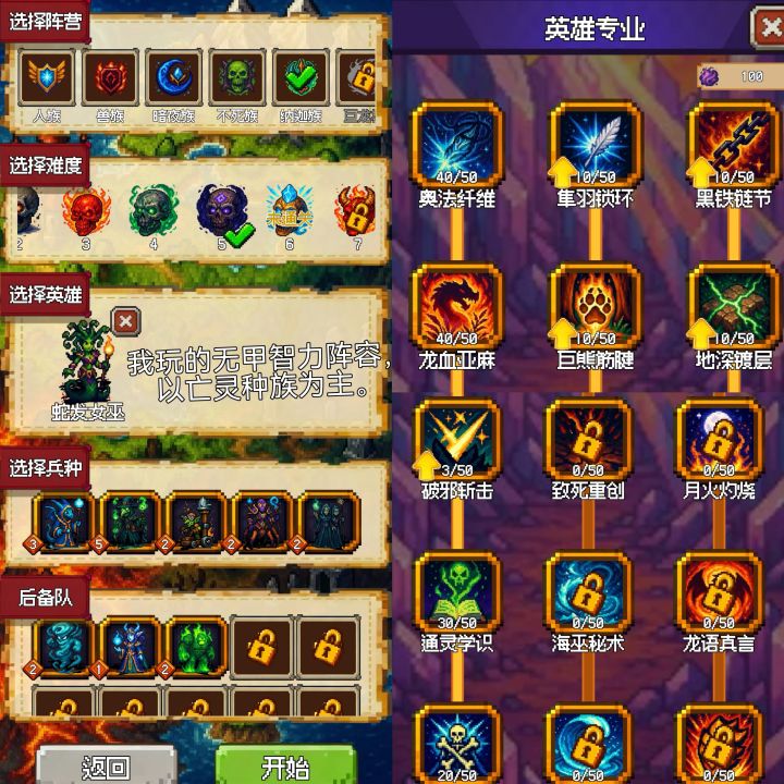 □肉鸽二选一。局内每天随机两个地块让你选择,地块类别分别有:探索、建筑、科技、打野战、地下城、兵种招募、灾变事件以及守塔战(这两个都是双数出现必须择一),守塔战每30天一轮,失败游戏结束。