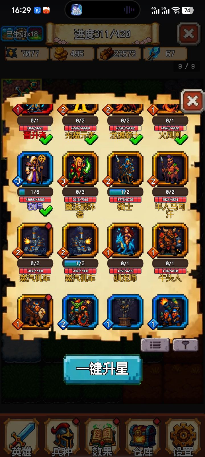 这个游戏对新手不是特别友好。所以搞个给新手看的攻略,方便入门。第一,进入游戏后,随便选一下,先开两把再说,有一个对游戏的初步了解。至少知道常见的内容,比如在推图过程中都有哪些东西,比如打野,比如地下城,比如商店啥的。第二,推图N1准备。种族选择。新手建议用人族或者兽族。英雄选择法系的。人族的大法师,兽族的先知。兵种选择。右下角有个筛选,优先选择智力型无甲的。原因:一方面这个阵容好凑,二是智