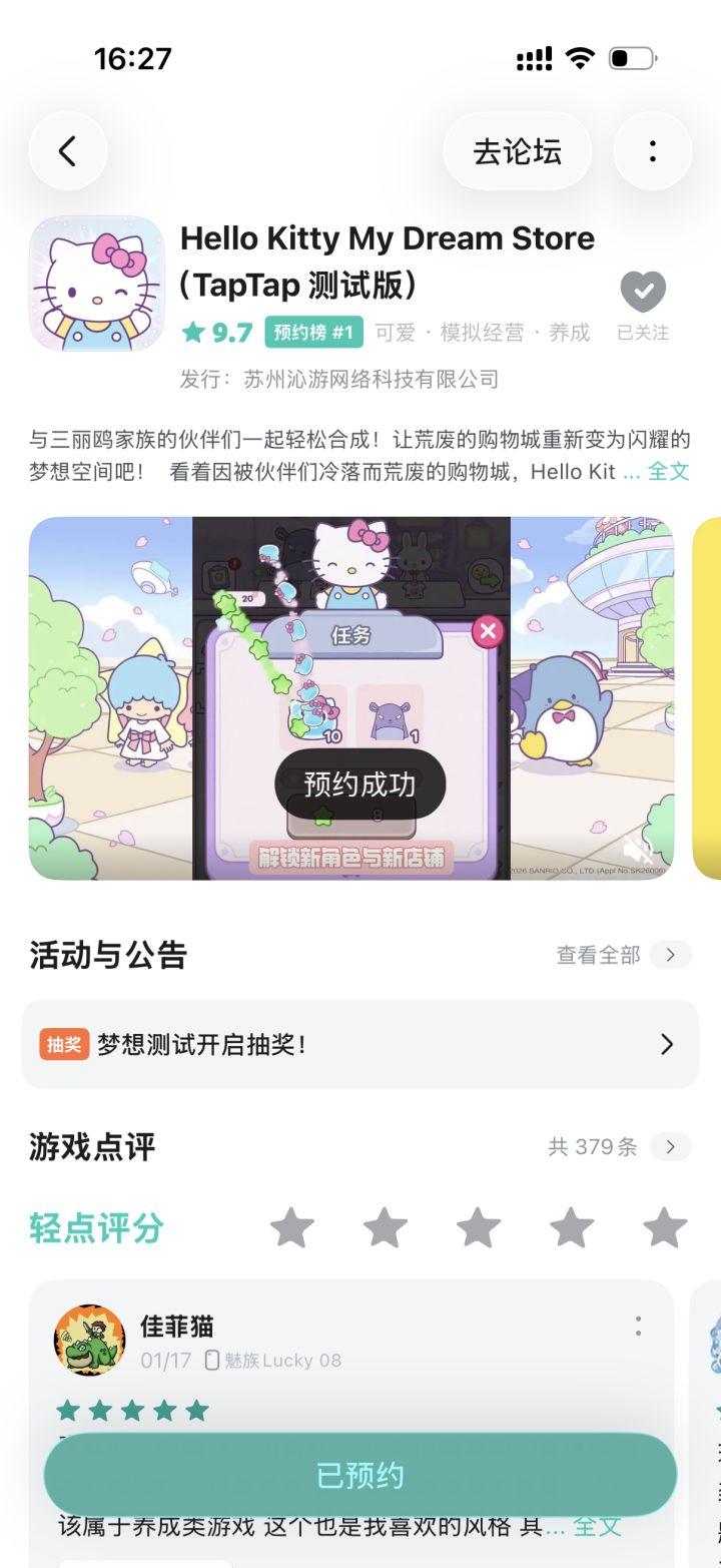 #hellokittymydreamstoreTapTap测试版 #TapTap年度游戏大赏应援 #休闲游戏 #游戏安利 #游戏推荐 #游戏讨论 #合成 #三丽鸥