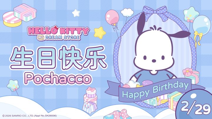 帕恰狗的生日即将到来!邀请萌主们一起送上属于你的特别祝福~好奇心和梦想都会陪伴在你身边!#HelloKittyMyDreamStore #凯蒂猫梦想商店 #三丽鸥 #帕恰狗 #游戏推荐